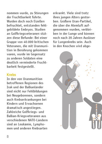 In den von Uranmunition betroffenen Regionen des Irak und der Balkanländer sind nicht nur Fehlbildungen bei Neugeborenen, sondern auch Krebserkrankungen bei Kindern und Erwachsenen dramatisch angestiegen. Zahlreiche Golfkriegs- und Balkan-Kriegsveteranen aus verschiedenen NATO-Ländern sind an Leukämie, Lymphomen und anderen Krebsarten