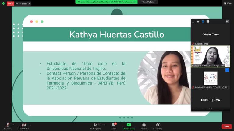 En plus des sessions zoom sur les sujets précités, il y avait un concours scientifique auquel ont participé des membres de toutes les filiales de l'APEFYB ; une session pour en savoir plus sur l'APEFYB et l'IPSF où nous étions accompagnés par le président de PARO, M Hugo Napán et un événement social pour élire les "Miss" et "Mister" de l'événement