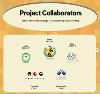 Les médicaments sont les produits les plus contrefaits sur le marché mondial, et c'est un problème de santé publique pour tous les pays du monde, cependant, même avec l'ampleur connue, ce n'est pas un sujet abordé quotidiennement par les professionnels de la santé et les étudiants de premier cycle La lutte contre les médicaments contrefaits est incluse dans les 19e objectifs de développement du FIP Sécurité des patients, cela dit, la FEBRAF a rejoint l'APEFyB, Pérou ; ACEIP, Canada ; IPGA SF, Inde ; OEQF, Guatemala pour soutenir la mise en œuvre de cet objectif et sensibiliser notre public à cet égard, en plus de renforcer les liens entre les associations dans le processus