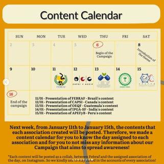 Con esto, las publicaciones se realizaron a lo largo de una semana y a cada asociación se le asignó un día En el día designado, esa asociación publicaría su trabajo en el formato de colaboración con la cuenta oficial de la FEBRAF. Como sólo una asociación publicaba por día, se animaba al resto de asociaciones a promocionar las publicaciones de la campaña aunque no fuera su día de publicación