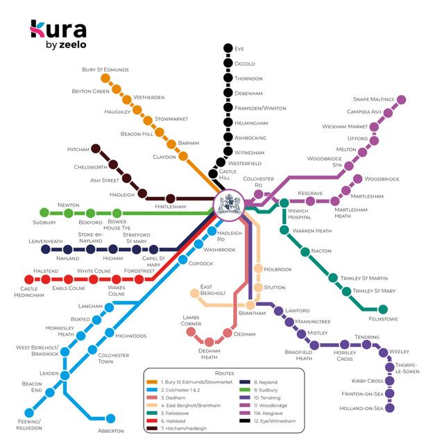 This map is intended as a guide and does not list every stop on each route. Please refer to the service timetable on the Kura website for complete stop information.