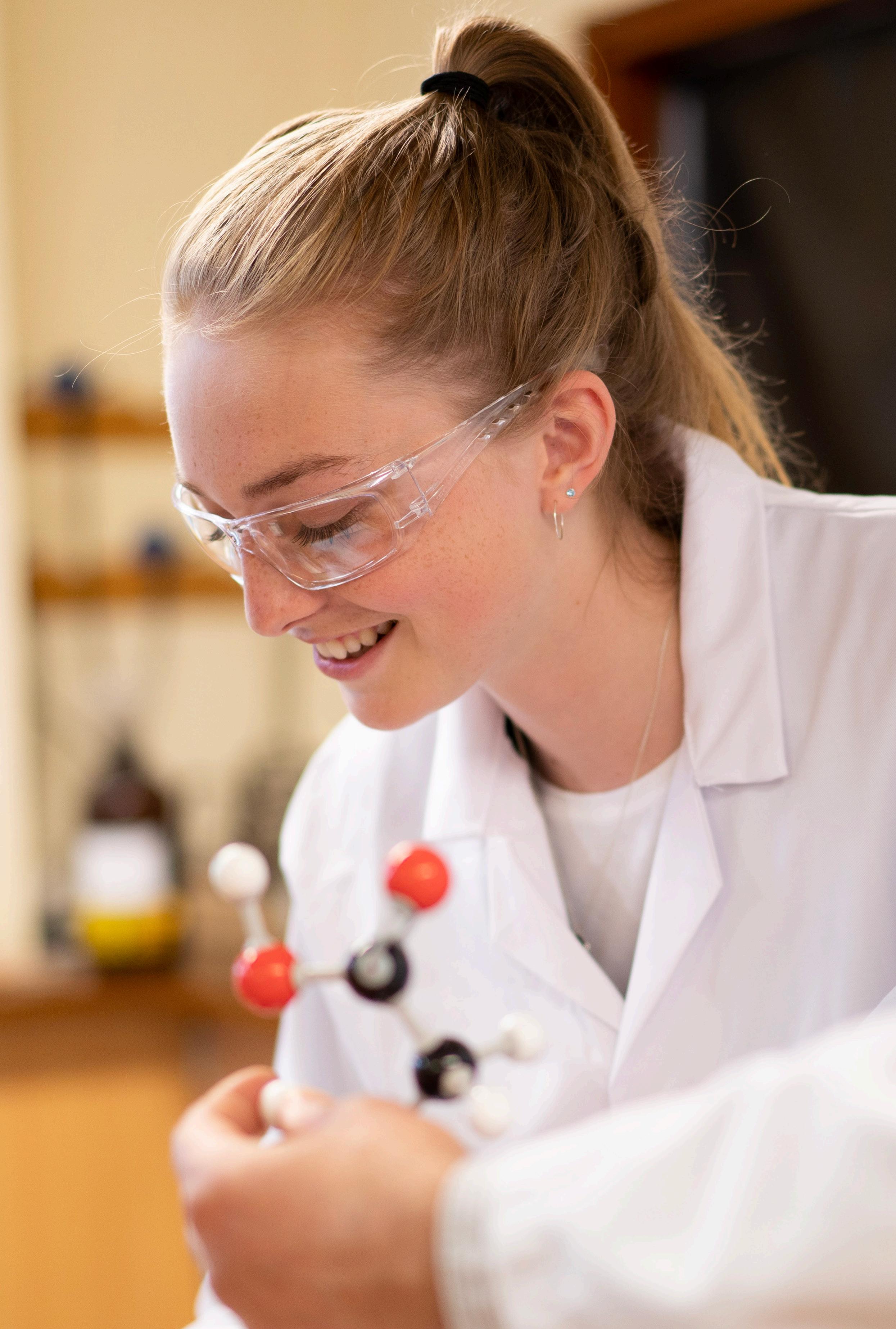 Chemistry at A Level can be divided into three areas: physical, inorganic and organic. Topics studied at GCSE such as bonding, rates of reaction and equilibrium are significantly expanded and new ones are introduced including arenes, buffers and nuclear magnetic resonance spectroscopy. The development of practical skills is an integral part of the course and forms part of the final examinations.