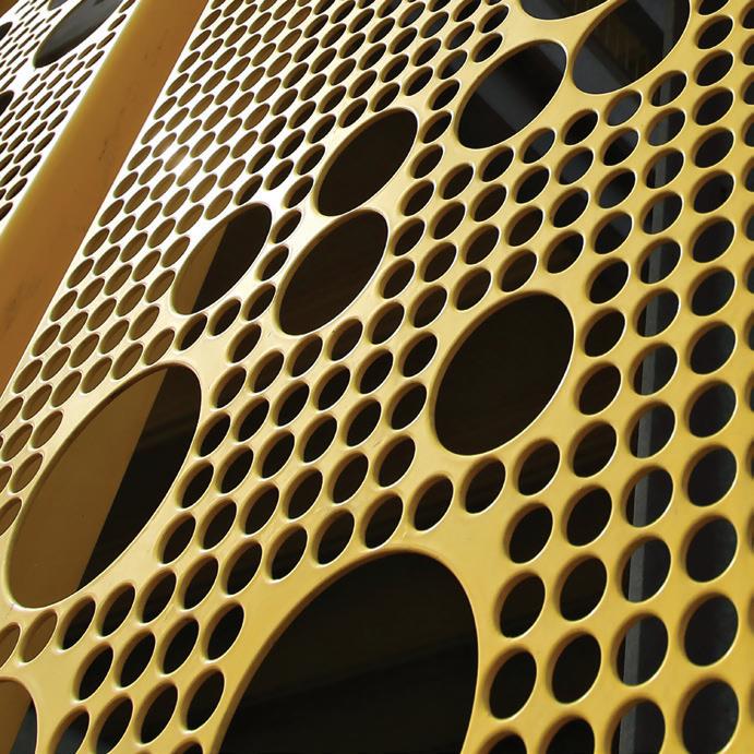 panels to recall large-scale industrial steel pipes, telling the story of the building’s operations.