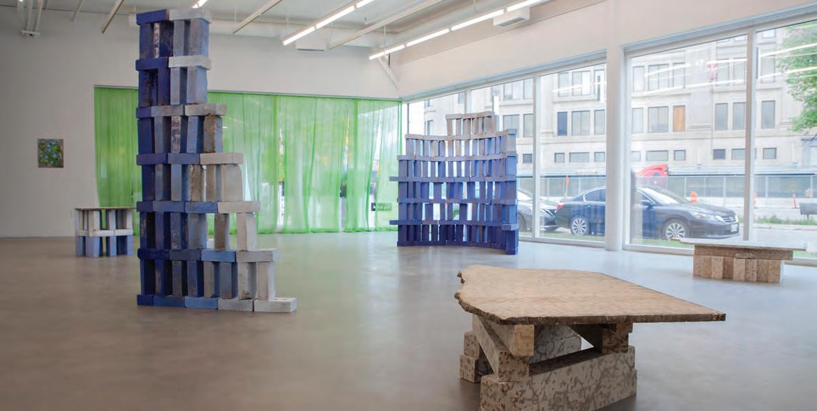 At Winnipeg’s Plug In Institute of Contemporary Art, Witthöft & LaTourelle’s Betonwaves installation uses rubble to tell a powerful story of reconciliation. Using demolition waste from the Hudson’s Bay Company Building across the street, the artists created new bricks, arrayed in irregular walls. Painted in shades of blue, the sculptures evoke sky rather than earth, and ruins rather than monuments: this turns the narrative of the colonial building on its head.