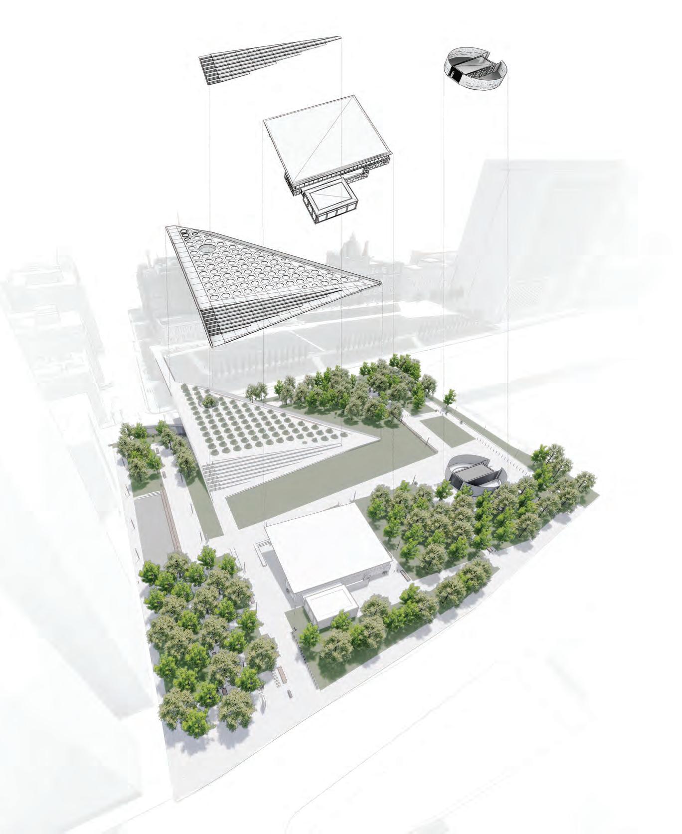 CLIENT UNIVERSITY OF TORONTO | ARCHITECT TEAM SHIRLEY BLUMBERG, CHRIS COUSE, GORAN MILOSEVIC, OLGA PUSHKAR, BRIAN MELCHER, NICK JONES, ADAM JENNINGS, MATTHEW KRIVOSUDSKY, FOTINI PITOGLOU, CHRISTIANA APANAPA, RAMON JANER, SHIYANG WANG, AURORA CHI, BRENT WAGLER, DONIA BARAI, ERIK SKOURIS, ARMINÉ TADEVOSYAN, OLENA CHORNY, ANNE KWAN, ANDREW BARAT, NICOLAS GREEN, LEAH KIM, NICK CHOI, THOM SETO TRANSPORTATION/ TRAFFIC BA CONSULTING GROUP LTD. STRUCTURAL RJC ENGINEERS MECHANICAL/GEOTHERMAL CROSSEY ENGINEERING LTD. | ELECTRICAL MULVEY AND BANANI INTERNATIONAL INC. CIVIL SCS HERITAGE ERA ARCHITECTS | LANDSCAPE MVVA | LIGHTING TILLOTSEN DESIGN ASSOCIATES WAYFINDING/SIGNAGE BHANDARI & PLATER INC. | COST TURNER & TOWNSEND | CODE/ACCESSIBILITY LRI | AREA 17 ACRES | BUDGET WITHHELD COMPLETION SEPTEMBER 2024