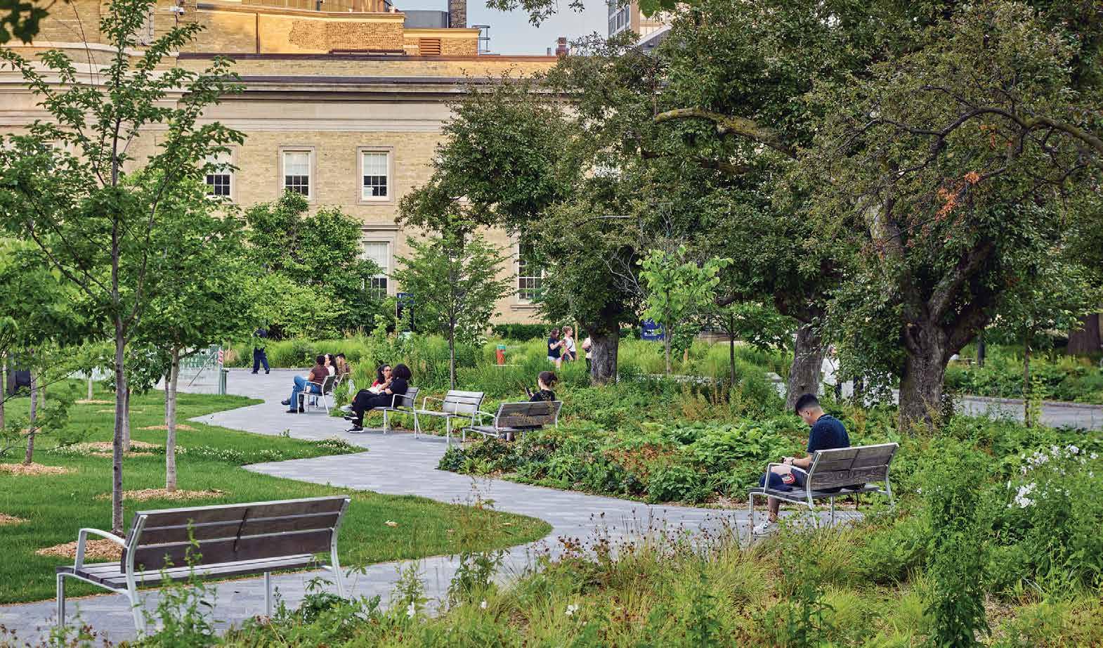 THE REVITALIZATION OF UNIVERSITY OF TORONTO’S CENTRAL LAWN AND ITS SURROUNDINGS PUTS PEDESTRIANS AND LANDSCAPE AT THE HEART OF THE HISTORIC CAMPUS.