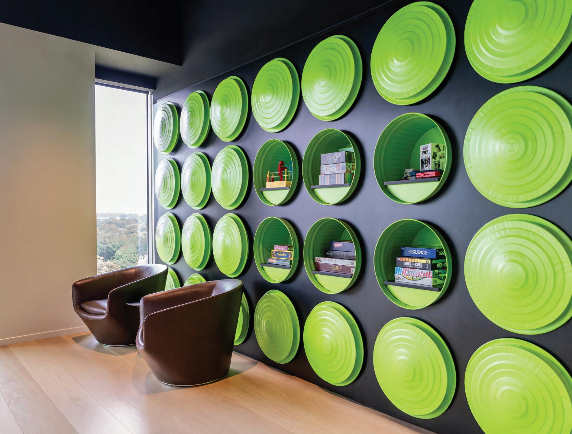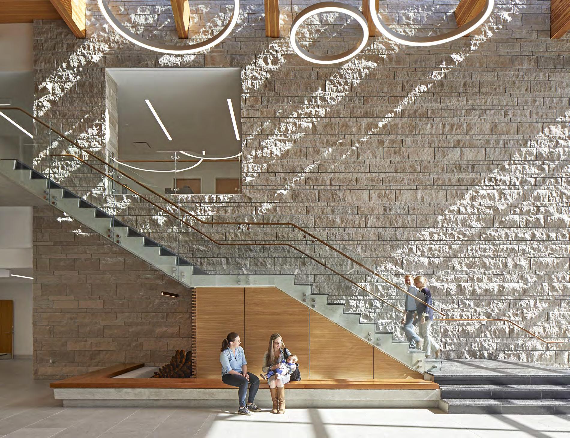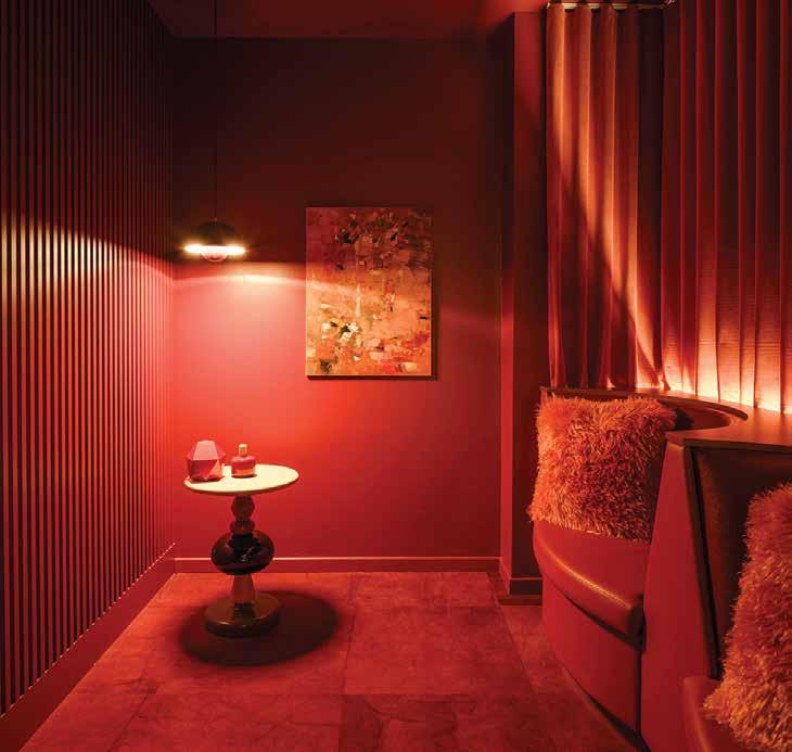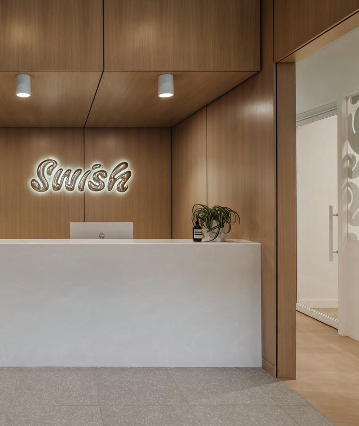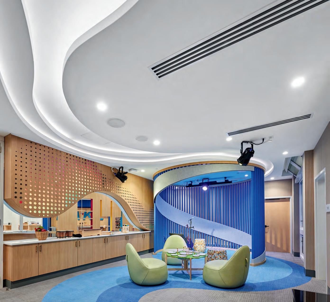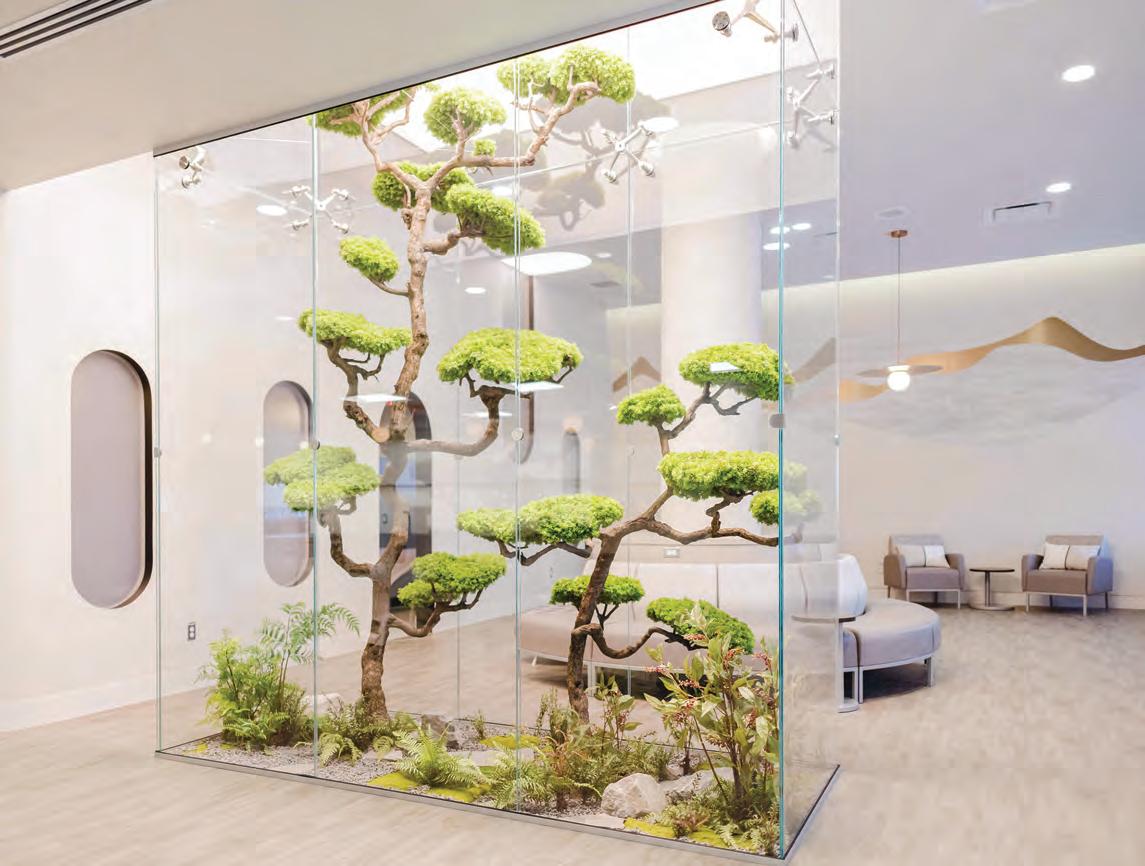 tactile warmth and organic forms that encourage emotional ease. Natural materials anchor spaces in biophilic principles, while lighting and acoustic control fine-tune the body’s response. Reception zones feel more like cafés, hotel lounges or galleries than waiting rooms, using furniture arrangements and multifunctional layouts to foster social connection and a sense of belonging. Intuitive wayfinding eases cognitive load, while durable, cleanable finishes quietly meet regulatory demands without compromising atmosphere. Whether it’s a meditation room at the heart of a dermatology clinic or a staff wellness retreat shaped by user input, these designs choreograph sensory experience to reduce stress, support routine care, and reframe medical visits as acts of self-care. Wellness here operates as infrastructure: spatial, material and social.