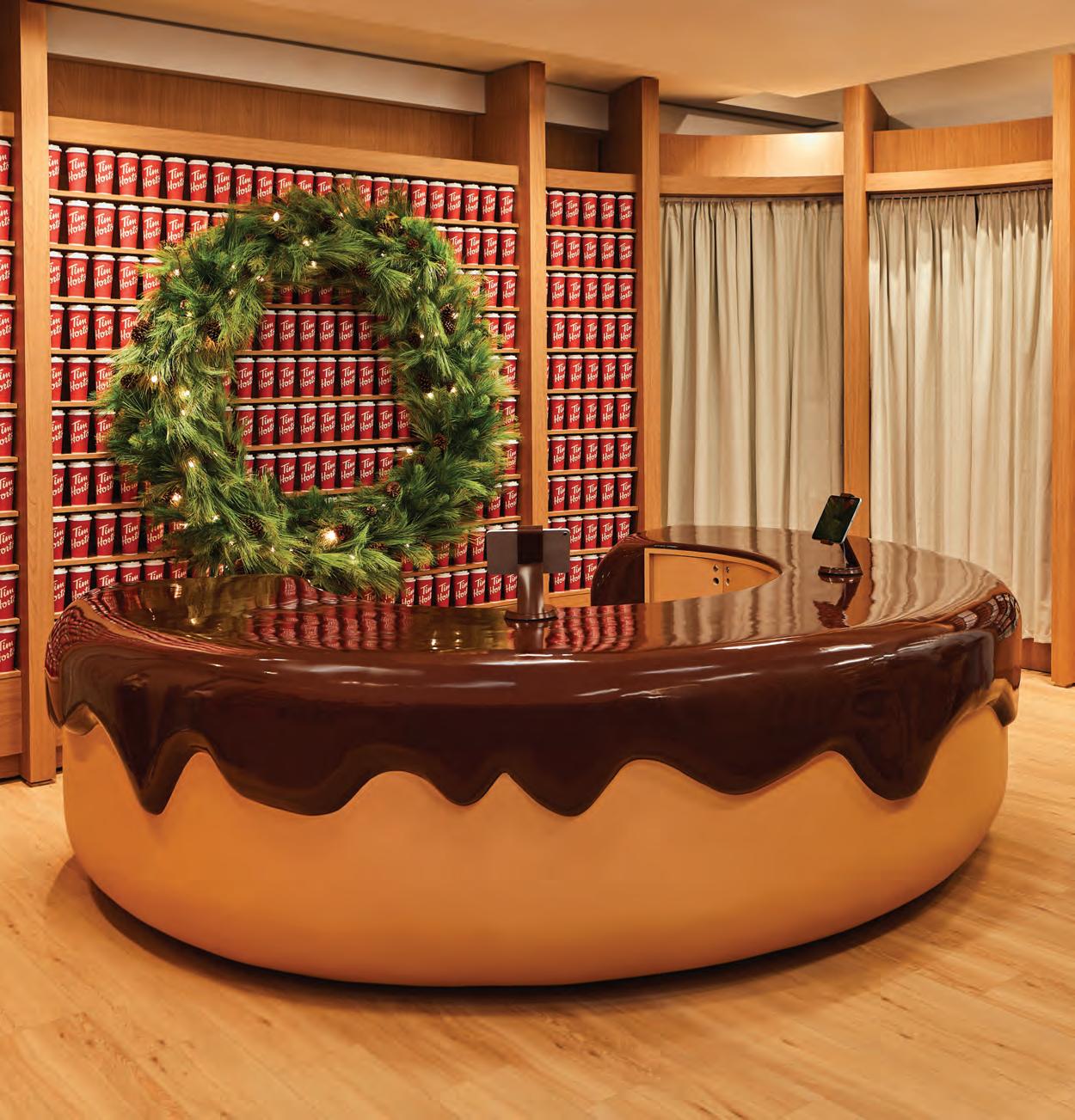 Double Double extra haute Canada’s caffeine icon, Tim Hortons, tapped Mason Studio to design a pop-up shop in Toronto’s Eaton Centre that blurs nostalgia and futurism, creating a surreal retail playground where memory becomes material. A seven-foot teddy bear, quilted architectural forms, and a donut-shaped cash desk turn everyday touchpoints into sculptural moments, while a red-cup wall and deconstructed food-truck kiosk reframe familiar icons.