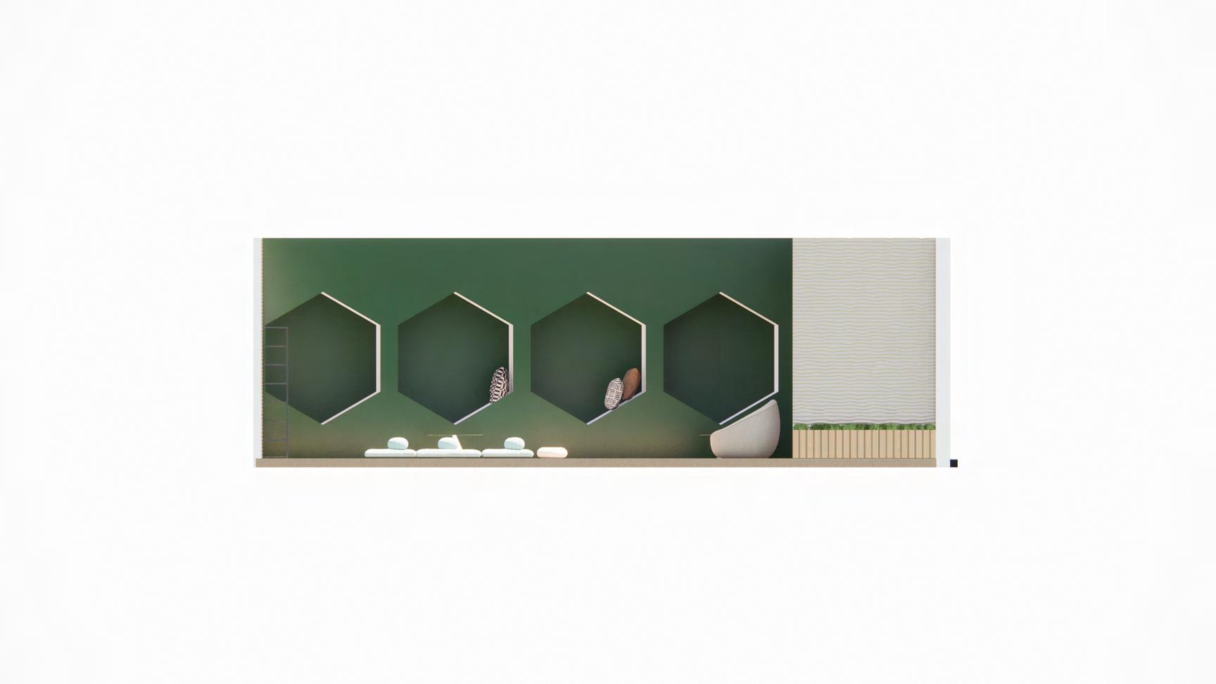 Geometric patterns and muted colors to promote the users joy and health every time they visit the facility.