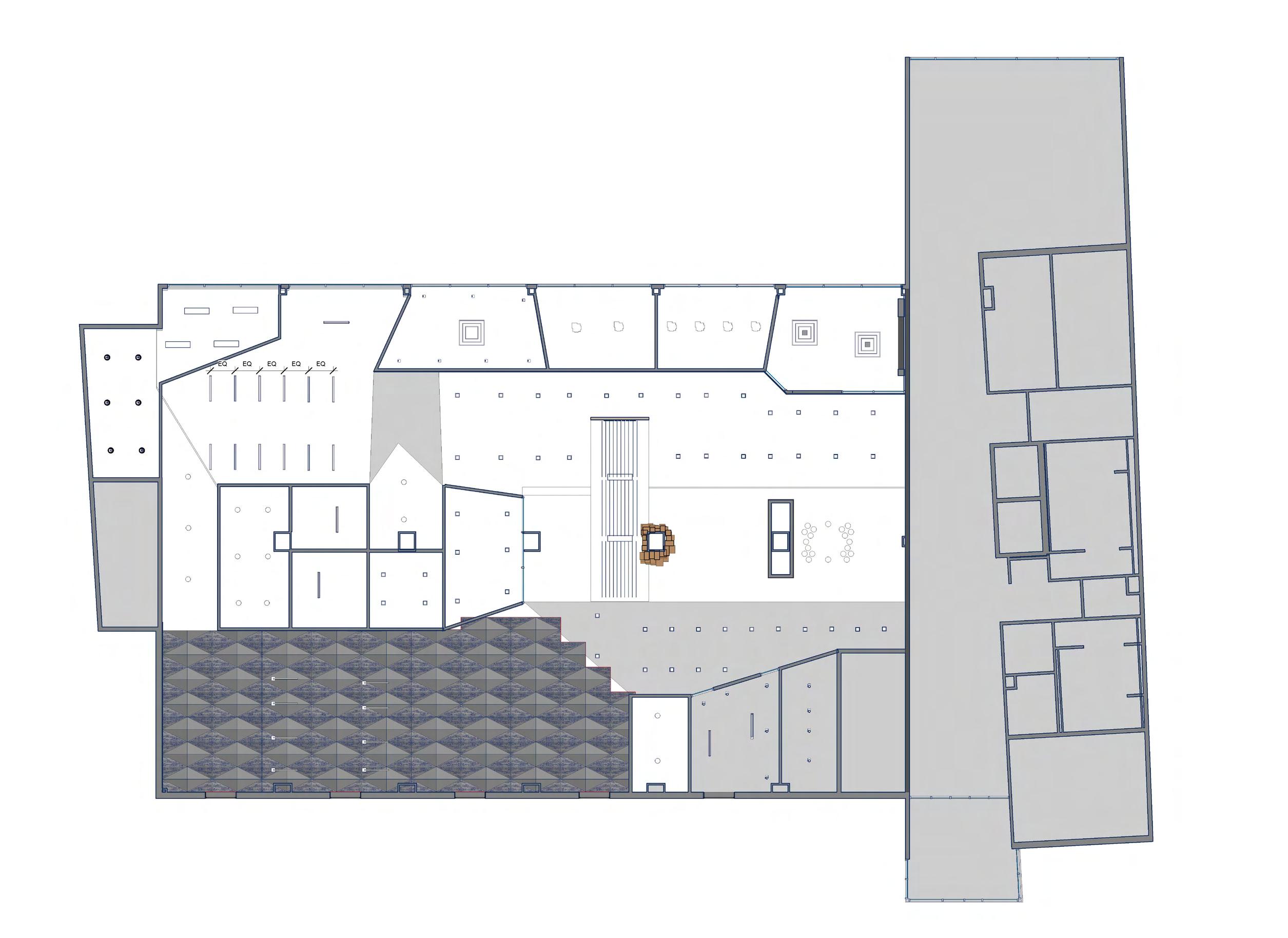 Due to the building bay system, the grid organization of the columns. It can create an issue when designing one's space but with unique and creative thinking, the columns and gridstructurecanbeusedasa guide tool.