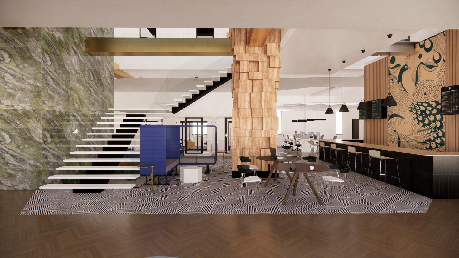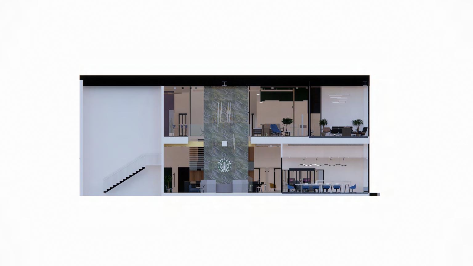 The areas will be split by department, but everyone will have equal access to open collaboration. The second level will be more open to the public, while the third level will be more private. Because Starbucks is the client, the café will function as the main open collaborative place while also showcasing the beauty of the company's culture and heritage.