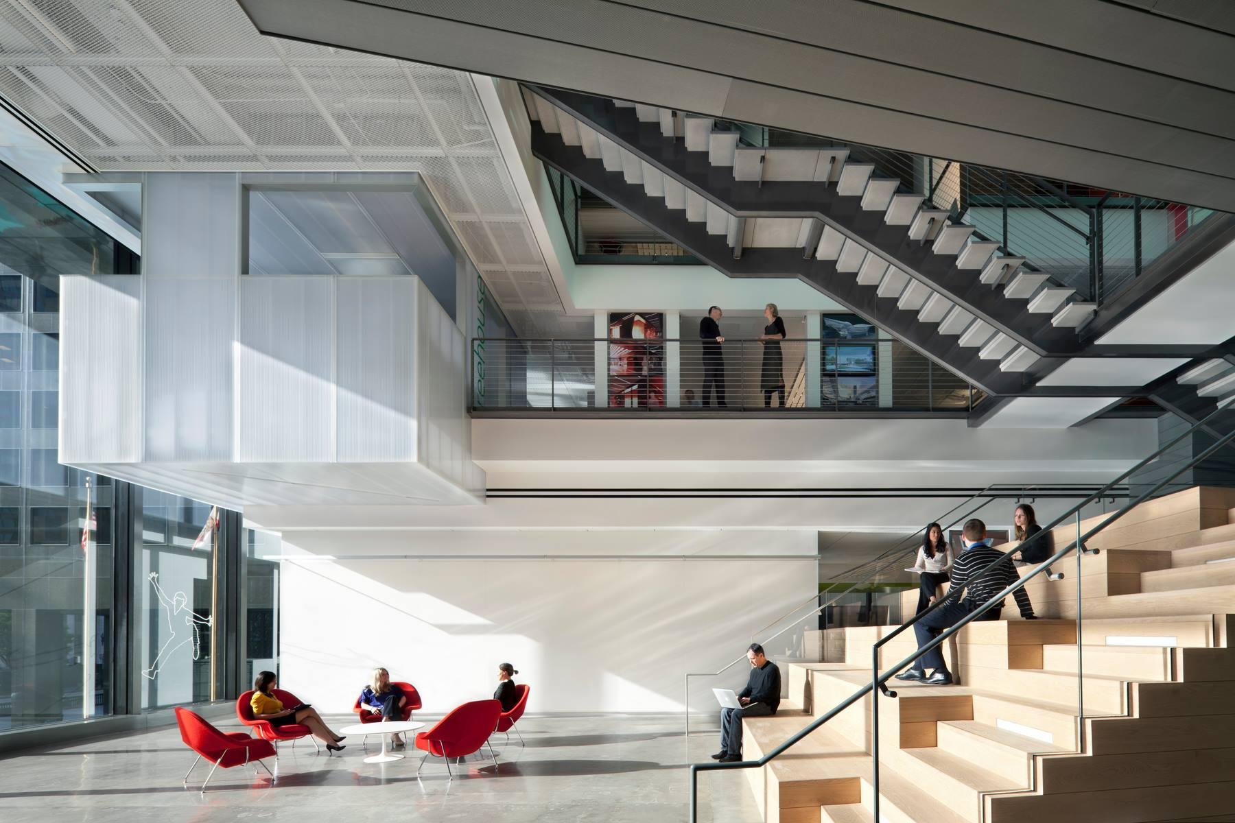 Gensler’s Los Angeles office is the first vertical urban creative campus in the downtown area. The firm adapted a former bank into an open, flexible work environment.