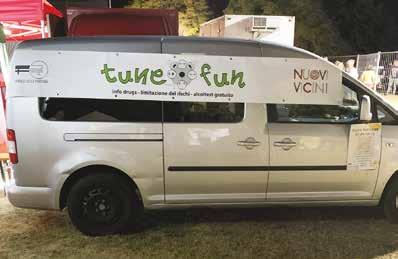 teriali di profilassi, 278 flyer in fodrugs e MTS e effettuato 77 alcoltest. In entrambi i setting molti sono stati i colloqui ed i counseling eseguiti, purtroppo difficili da tenerne traccia. Fin da subito gli organizzatori dei due eventi si sono resi disponi bili a sostenere e promuovere il progetto ponendo l’attenzio ne sulla salute e sul benes sere dei frequentatori. Alcuni operatori e operatrici di Tune Fun sono stati presenti insieme ad altri colleghe e colleghi delle reti nazionali C.N.C.A. e ITARDD ad eventi sul territorio italiano come il free party di ferragosto e il WAO Festival in Umbria. E’ infatti da un anno circa che si è creata una rete di operatrici ed operatori for mati sulle pratiche di riduzio ne del danno che condivido no metodologie e formazione e operano congiuntamente su eventi legali e informali di grossa portata sul territorio nazionale. Tra queste real tà citiamo: Nautilus (Roma), Neutravel (Torino), Piano B (Perugia), unità di strada Ge nova, Extreme (Firenze), lab57 (Bologna), Tipsina (Mestre), Bessimo, Hybrid (Napoli)… e molte altre. Invitiamo tutte e tutti a seguire i seguenti social per rimanere aggiornate/i sui prossimi interventi ai quali sa remo presenti.