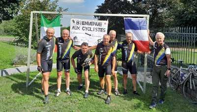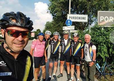 I muscoli si tendono e si rilas sano nell’estenuante danza che pare infinita, il sudore che cola dalla fronte è il risultato della sana fatica; verde val lata dopo passo montano, rigenerante discesa dopo sfibrante salita, con il suono meccanico della catena del la bicicletta che accompagna il ritmico battito del cuore e l’ansimante respiro pieno d’af fanno. Ad ogni spinta della gamba sul pedale, la meta appare progressivamente più vicina e raggiungibile, ren dendo i 1200km da percorre re non più un’utopia, ma un reale obiettivo. Nel mese di luglio questa fatica, l’impegno e l’entusiasmo diedero grinta e la spinta giusta al gruppo di ciclisti che, partendo dal sob borgo parigino di Villeparisis percorsero lo scenico tragitto fino ad Aviano. Ad aspettarli all’ambito arrivo, il fervore e il fremito di aver sormontato la metaforica vetta e raggiunto l’obiettivo prefissato, concluso l’ambito progetto. Pedalando per un tratto d’Europa i nostri ciclisti furono spinti da pura adrenalina e rigorosa disci plina, non senza stanchezza e insicurezza che ogni tanto serpeggiavano, avvolgendo li nelle sue spire. Tutti i com ponenti del gruppo hanno un background sportivo ricco e diverso, come Pascal Fau quembergue (1956) ciclista e maratoneta, Eric Guegen