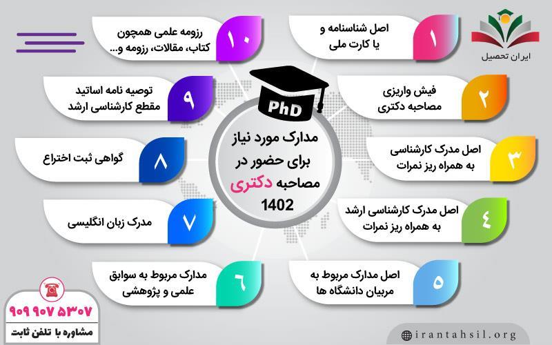 دوخ یناسر علاطا یاه هاگیاپ رد اه هاگشناد زا مادک ره ،یرتکد هبحاصم هب توعد هوحن اب طابترا رد دننک یم صخشم زین و هدرک یناسر علاطا ار زاین دروم کرادم هئرا و هدنورپ لیکشت دنور یبوخ هب بحاصم ایآ هک یزاجم ای دوب دهاوخ یروضح امش ه �� هرمن باصن دح بسک ار هبحاصم هلحرم رد امش روضح زوجم نیا یدرف رگا .دنک یم صخشم زارت یدارفا .دش دهاوخ توعد یشهوژپ و یملع هقباس یسررب و هبحاصم یارب ،دشاب هدرک بسک ار هرمن ار یفارصنا درف مکح ،دنبای یمن روضح هسلج رد هبحاصم زور هک تشاد دنهاوخ . کرادم یرتکد هبحاصم رد روضح یارب زاین دروم 1402 ���� هبحاصم زور رد زاین دروم کرادم زا تسا مزلا ،یرتکد هبحاصم هب توعد هوحن زا علاطا زا سپ یرتکد نومزآ هبحاصم تلااوس هب نداد خساپ و روضح هک اجنآ زا .دیروآ تسدب ار مزلا تاعلاطا یهاوخ هراشا مزلا کرادم نیرت مهم هب همادا رد ،دوب دهاوخن ریذپناکما کرادم یخرب هئارا نودب م درک.
