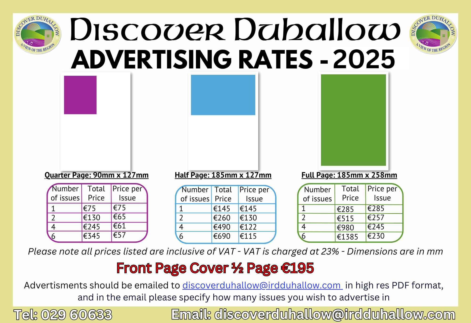 "The advertising The Discover Duhallow Magazine has given us has been a tremendous help to us here in THE MALLOW ADULT LEARNING CENTRE with highlighting our services for Adult Literacy in the general North Cork area and as a result we can provide the help people require. Thank you, Discover Duhallow Magazine!"