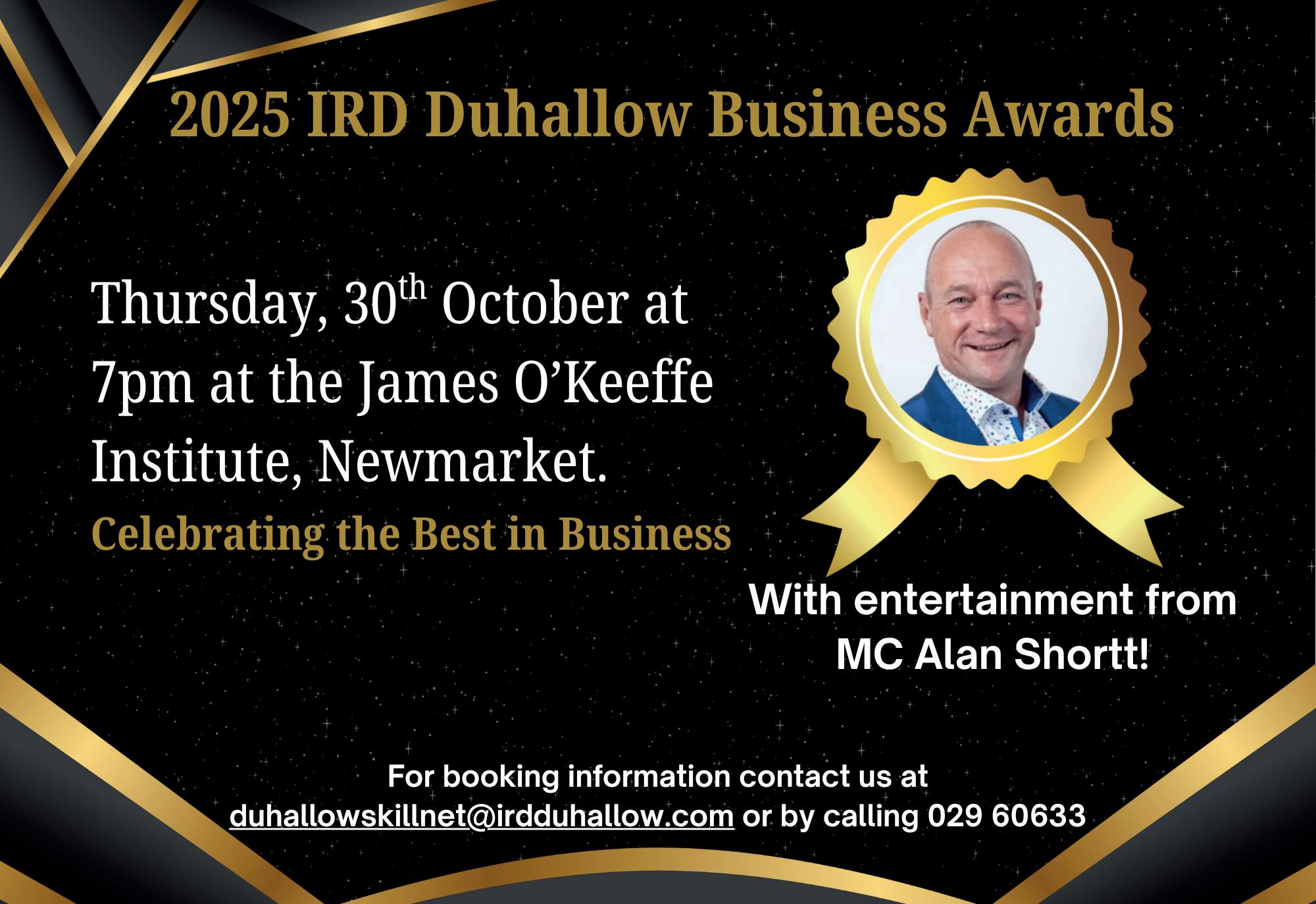 IRD Duhallow is excited to once again host our prestigious Duhallow Business Awards. Hosted by MC Alan Shortt, who is sure to keep everyone entertained throughout the night.