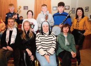 Jack Roche with Triona Dennehy, Maura Walsh, Eileen Linehan Nikki and Anne McAuliffe on the occasion of the Comhaltas Ceoltoiri Sliabh Luachra per forming in the Arás for President Michael D Higgins and his wife Sabina