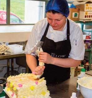 Marena decorates cakes in our baker y, which provides a full range of baker y products for sale on site, to local retail outlets and for special order