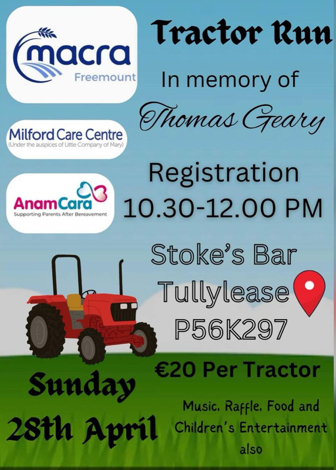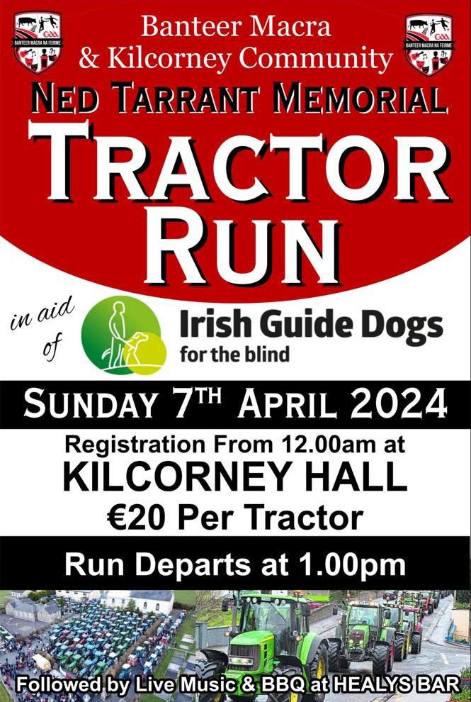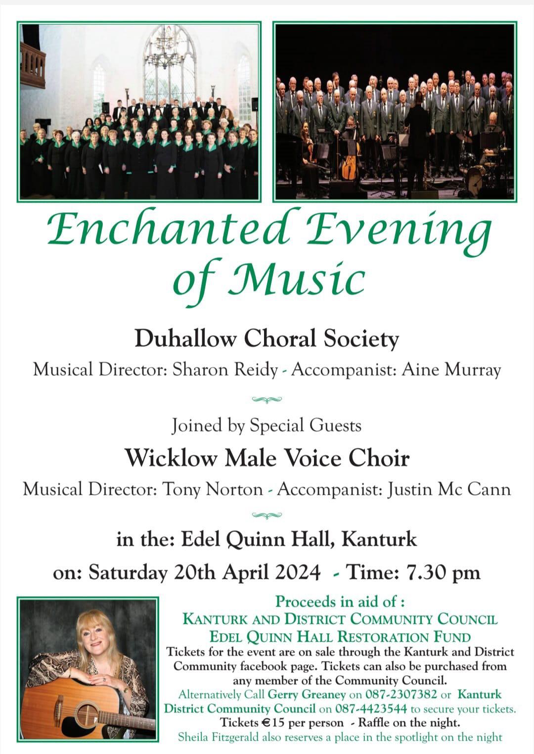 Monday 15th April 2024 from 7.00 - 8.30pm Edel Quinn Hall, 1 Inchwell Road, Greenane, Kanturk, P51 Y5W4