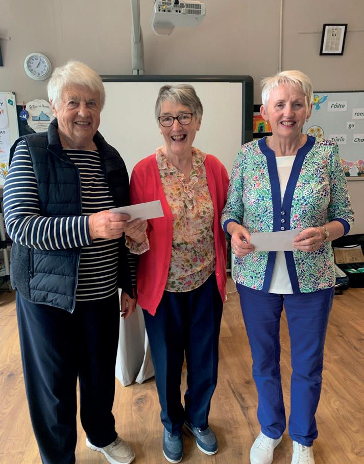 Betty O Sullivan President Tureencahill Bridge Club presents her President’s Prize to the runners up Mary Buckley and Sheila Corkery