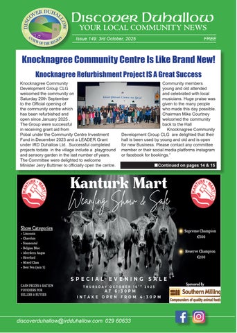 We are delighted to bring you this special bumper edition of Discover Duhallow with the IRD Duhallow Business Awards Supplement. In this issue, you’ll find a detailed look at the finalists who have made it to this year’s awards. This edition also features the Rockchapel Fashion show, a dazzling event showcasing local creativity. We celebrate the 25th anniversary of Bruach na Carraige in Rockchapel, a milestone that marks a quarter of a century of cultural enrichment. We also feature the IRD Duhallow LEADER information evenings, where community members were informed about the opportunities available for development projects. We hope you enjoy this edition!