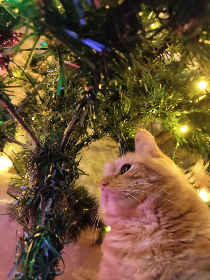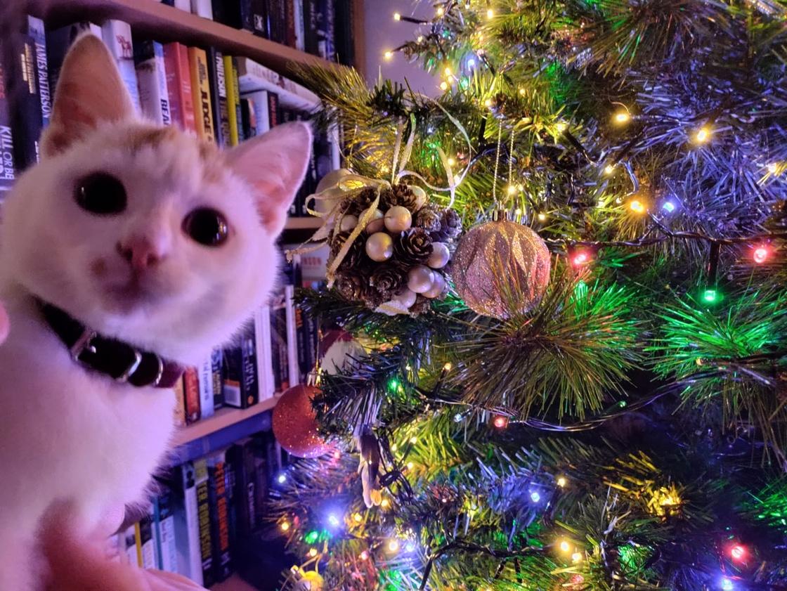 RIGHT: Molochai the Mischief Maker plots against the Christmas tree.