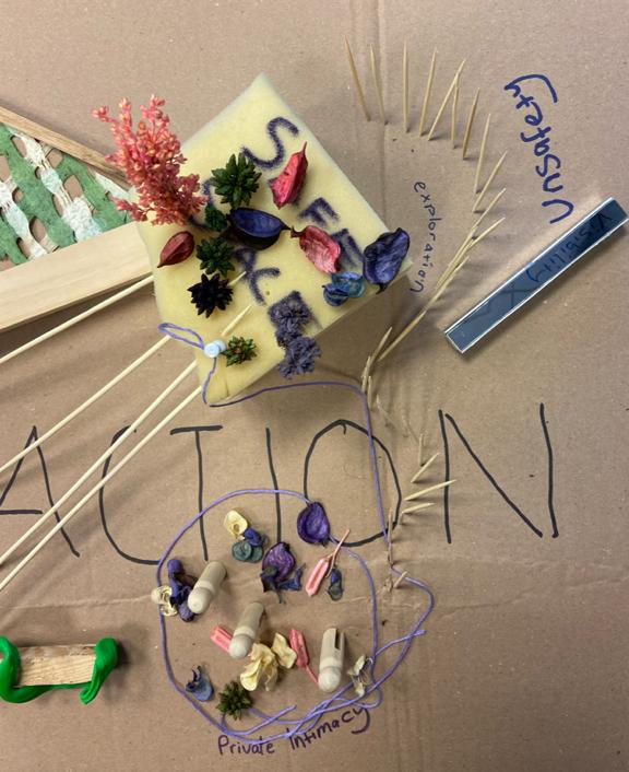 A completely safe space is seen as a utopian concept by the participants. The materials used for the safe space, being natural, fragrant and soft, associate this place with the concepts of intimacy, coziness and comfort. Safe space has a relationship with the concept of interaction in many ways. First, the sticks that come out of the interaction penetrate the safe space and influence it in a bad way.