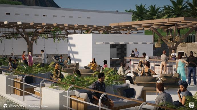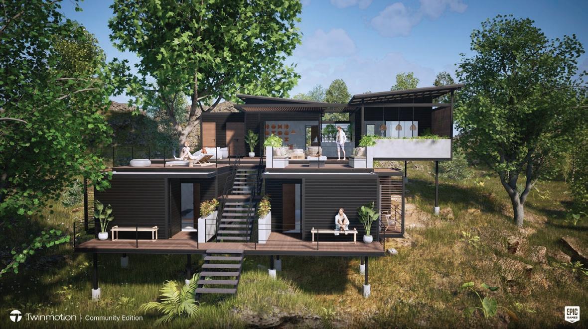 It is conceived as a house in the tropics that flows with the landscape, featuring light structures mounted on stilts that allow nature to continue its way. The under-floor spaces let vegetation thrive and interact with the project, much like moss interacts with tree bark. These floating spaces play with the land’s topography to enhance airflow, views, and interactions. The design layout integrates various spaces, all accessible from central common courtyards and connected by wooden paths that follow the natural contours of the land.