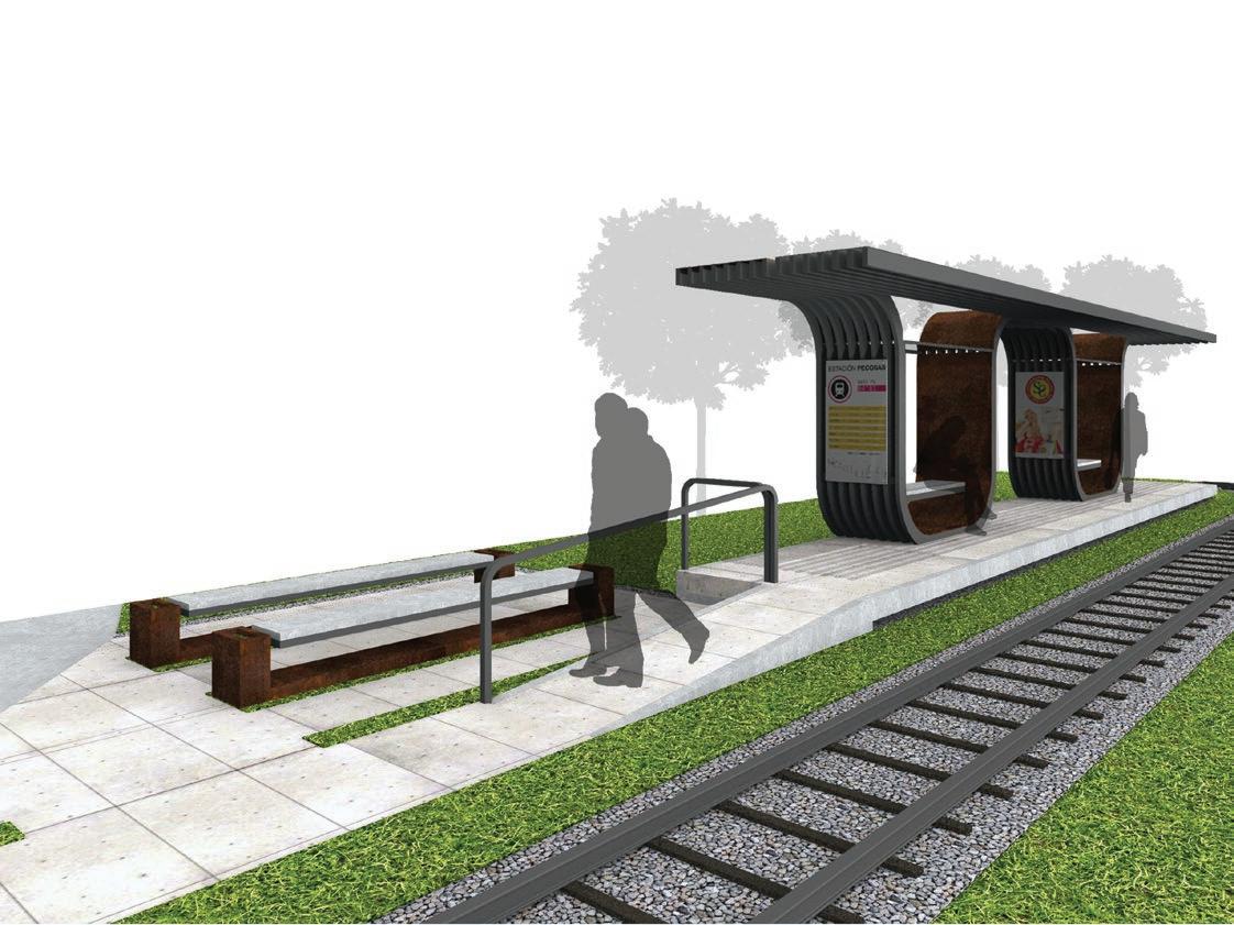 The module is configured from 8 steps. Its born from a segment or linear plane until it gets to an integral volume that functions as shelter and waiting space for train users, including advertising space and schedule information and cultural events in the area. Materials used to resume the industrial character and language of the railway line as primary structure, ensure long durability and low maintenance for greater efficiency and lower costs.