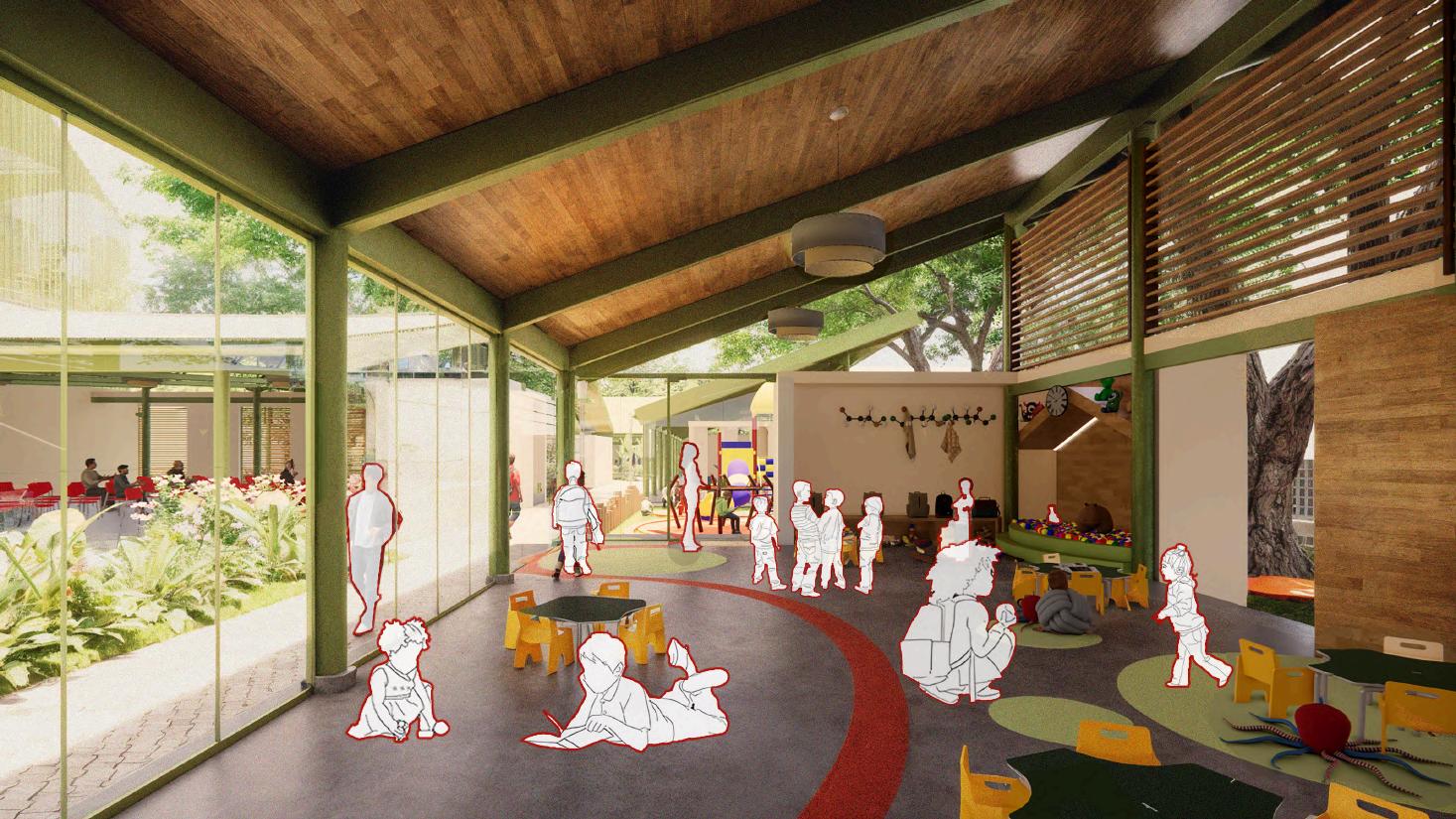 Este proyecto surge a partir de la necesidad de unificar y mejorar un colegio existente en Buenaventura, incorporando tanto las preexistencias como nuevos espacios destinados a fortalecer su función educativa y comunitaria. Entre las adiciones propuestas se encuentran un bohio (espacio de encuentro tradicional) y un laboratorio para compostaje, reconociendo el valor del colegio como un nodo no solo escolar, sino también públicoycomunitarioparaloshabitantes.