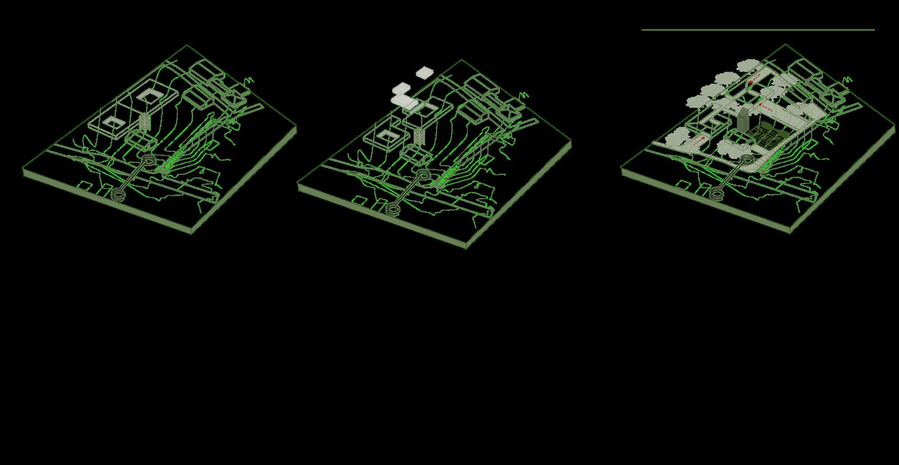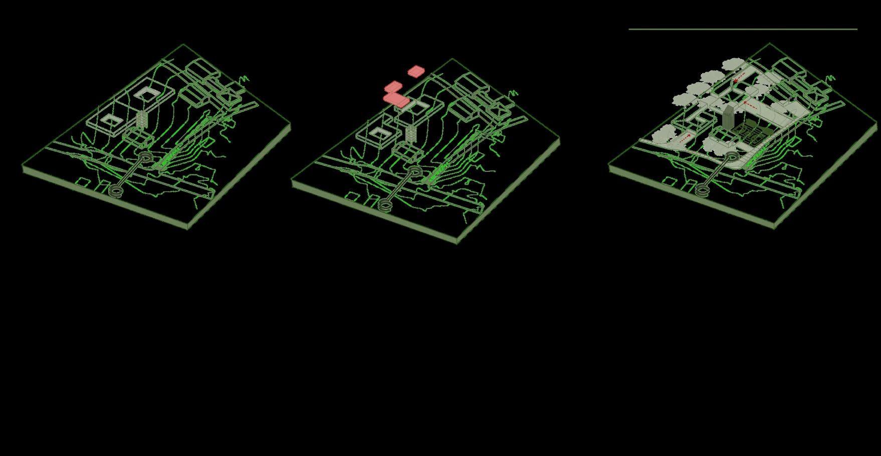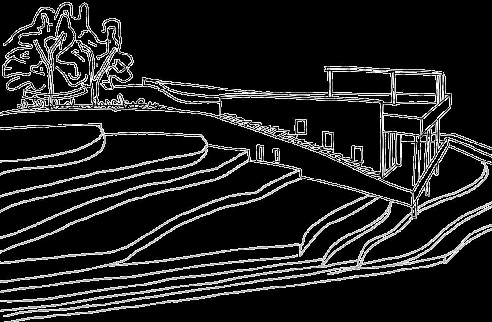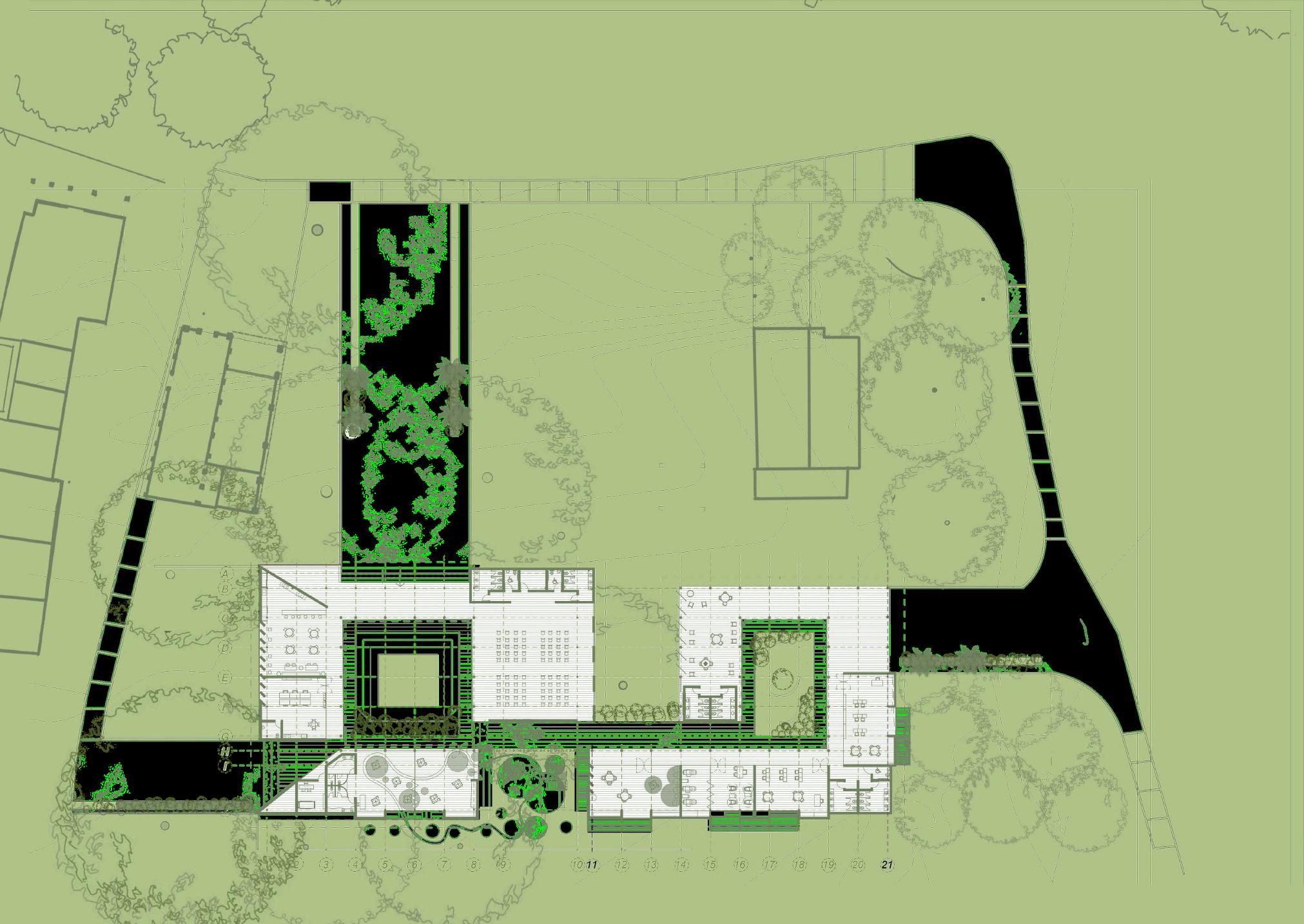 Se emplean formas orgánicas que siguen el trazado natural del relieve, ubicando el proyecto a partir del reconocimientodelasmasasarbóreasexistentes.Elobjetivocentraleslograrunaarquitecturaquedialoguecon elpaisaje,dondeloselementosconstruidosnoseimpongansobreelentorno,sinoqueseadaptenaéldeforma respetuosayarmónica.