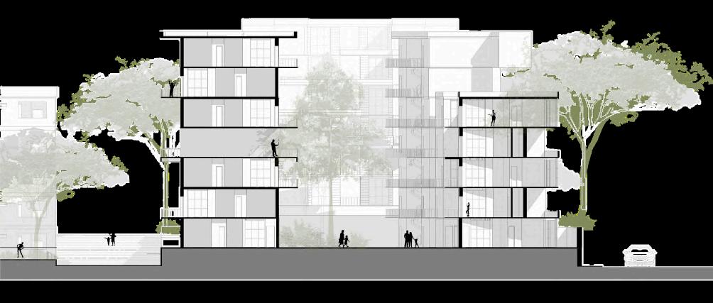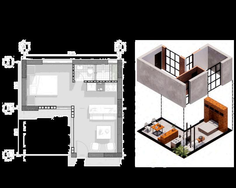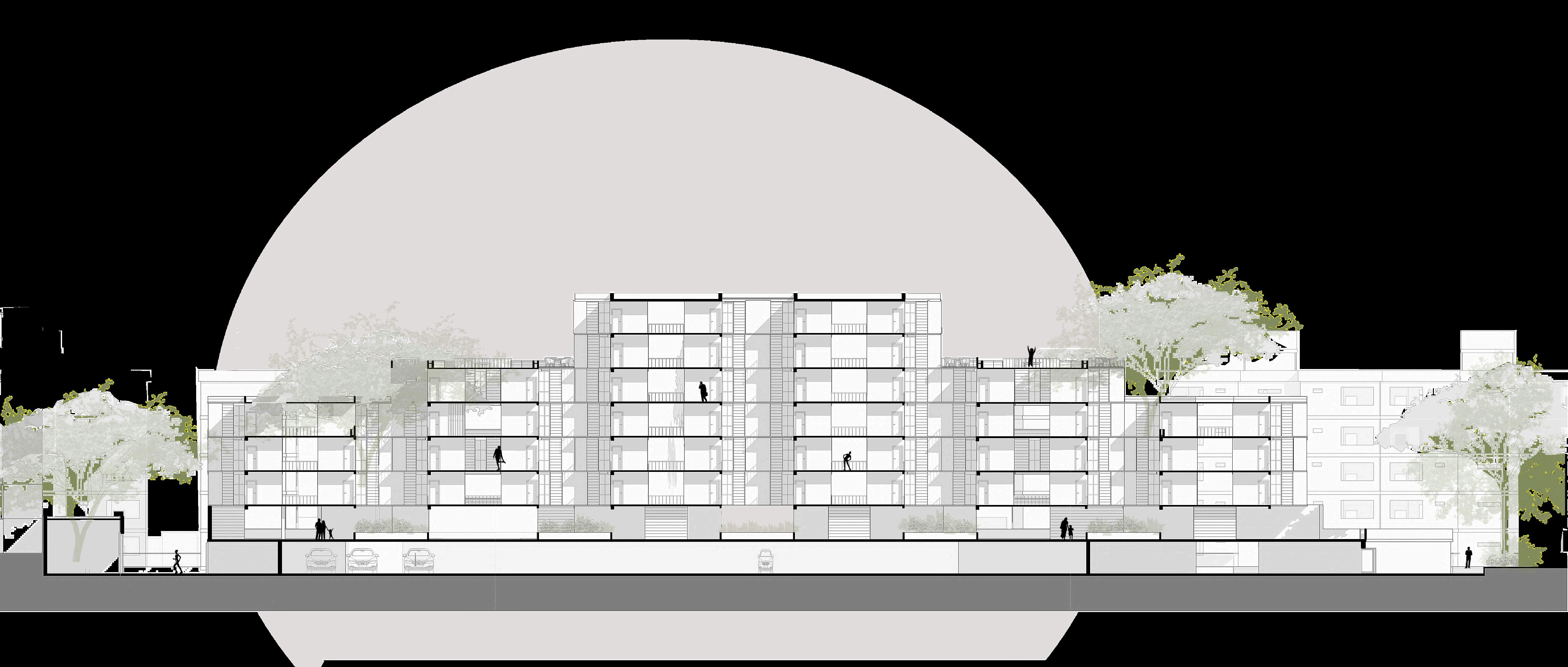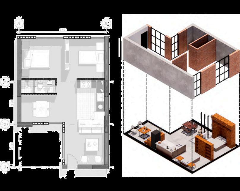 El proyecto se desarrolla bajo el enfoque de vivienda VIS y VIP (Vivienda de Interés Social y de Interés Prioritario), enfrentando un frente urbano de alta concurrencia con uso mixto residencial y comercial.Seplanteaunarelaciónarmónicaentreambosámbitos medianteunaplantabajacontinua,queactivalazonaatravésde un frente comercial y espacios intermedios que median entre lo públicoyloprivado,generandoestanciasdeusocomún.
