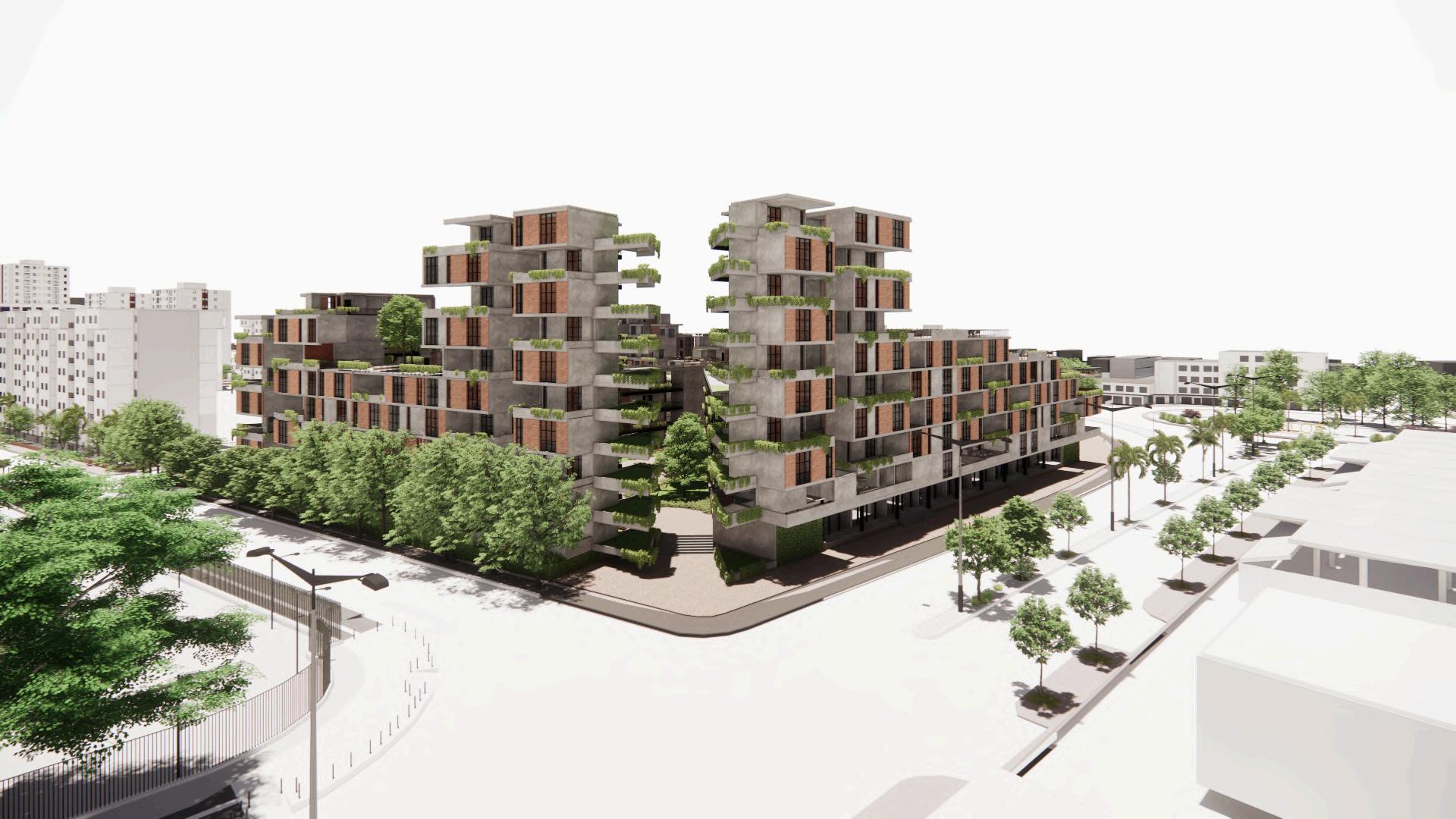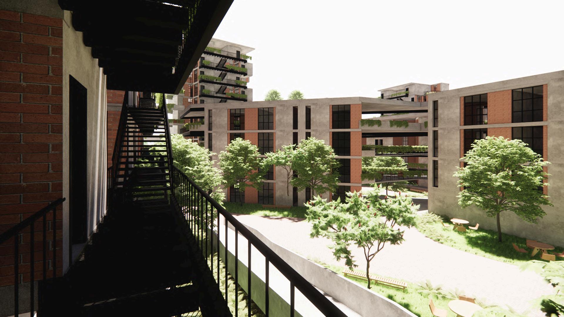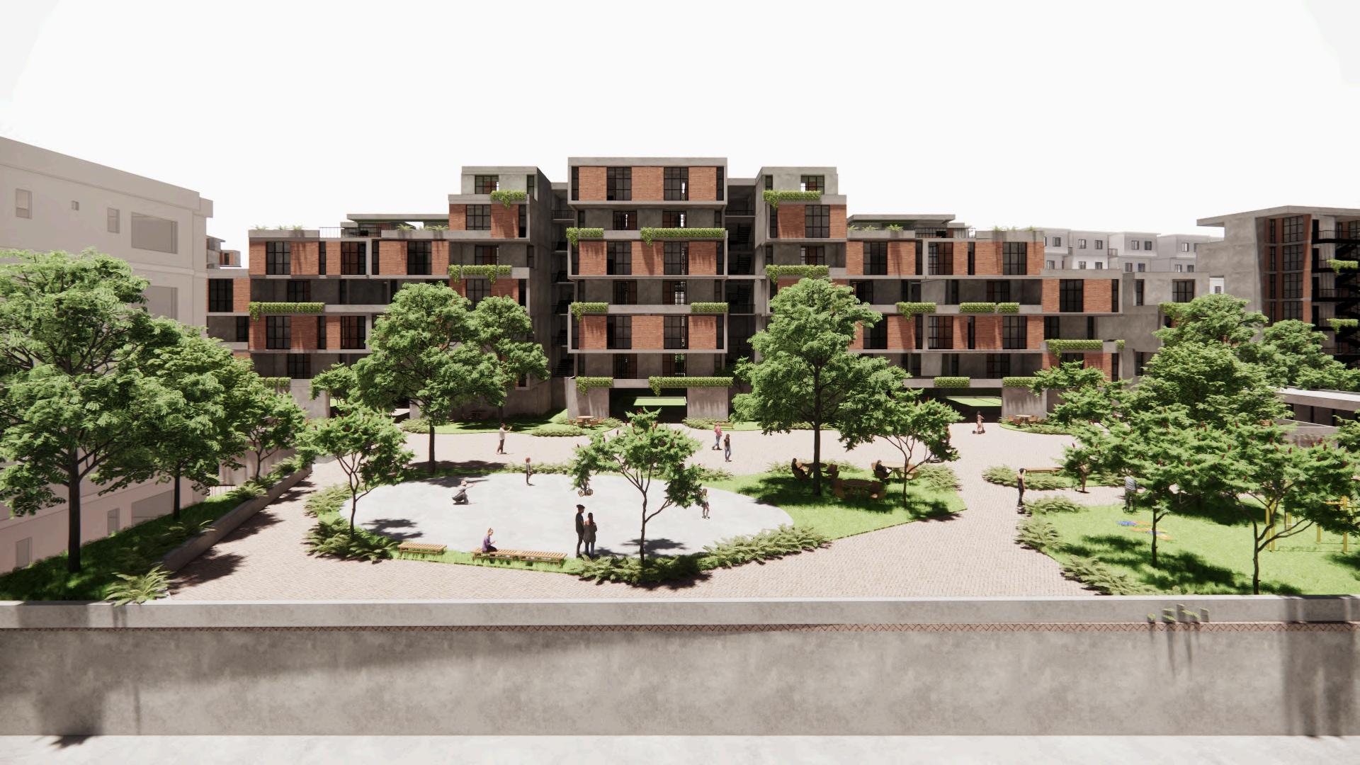 El proyecto se desarrolla bajo el enfoque de vivienda VIS y VIP (Vivienda de Interés Social y de Interés Prioritario), enfrentando un frente urbano de alta concurrencia con uso mixto residencial y comercial.Seplanteaunarelaciónarmónicaentreambosámbitos medianteunaplantabajacontinua,queactivalazonaatravésde un frente comercial y espacios intermedios que median entre lo públicoyloprivado,generandoestanciasdeusocomún.