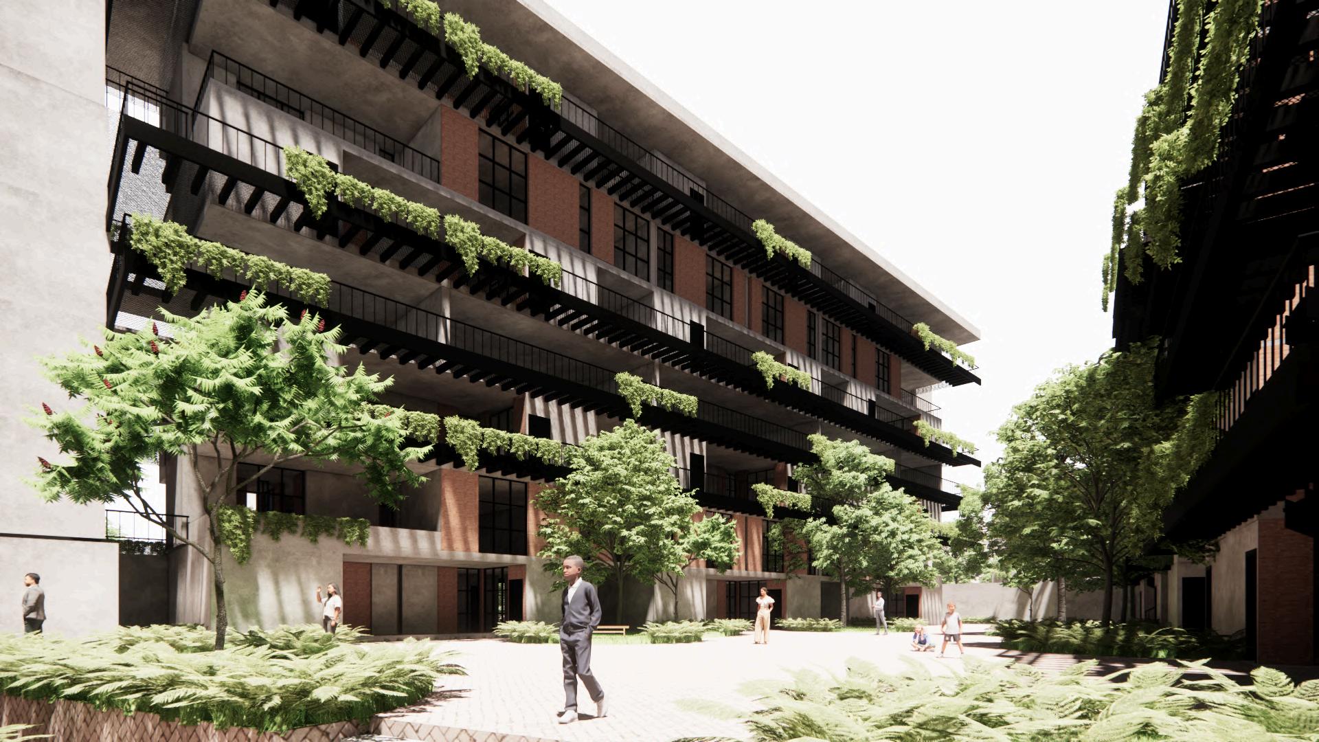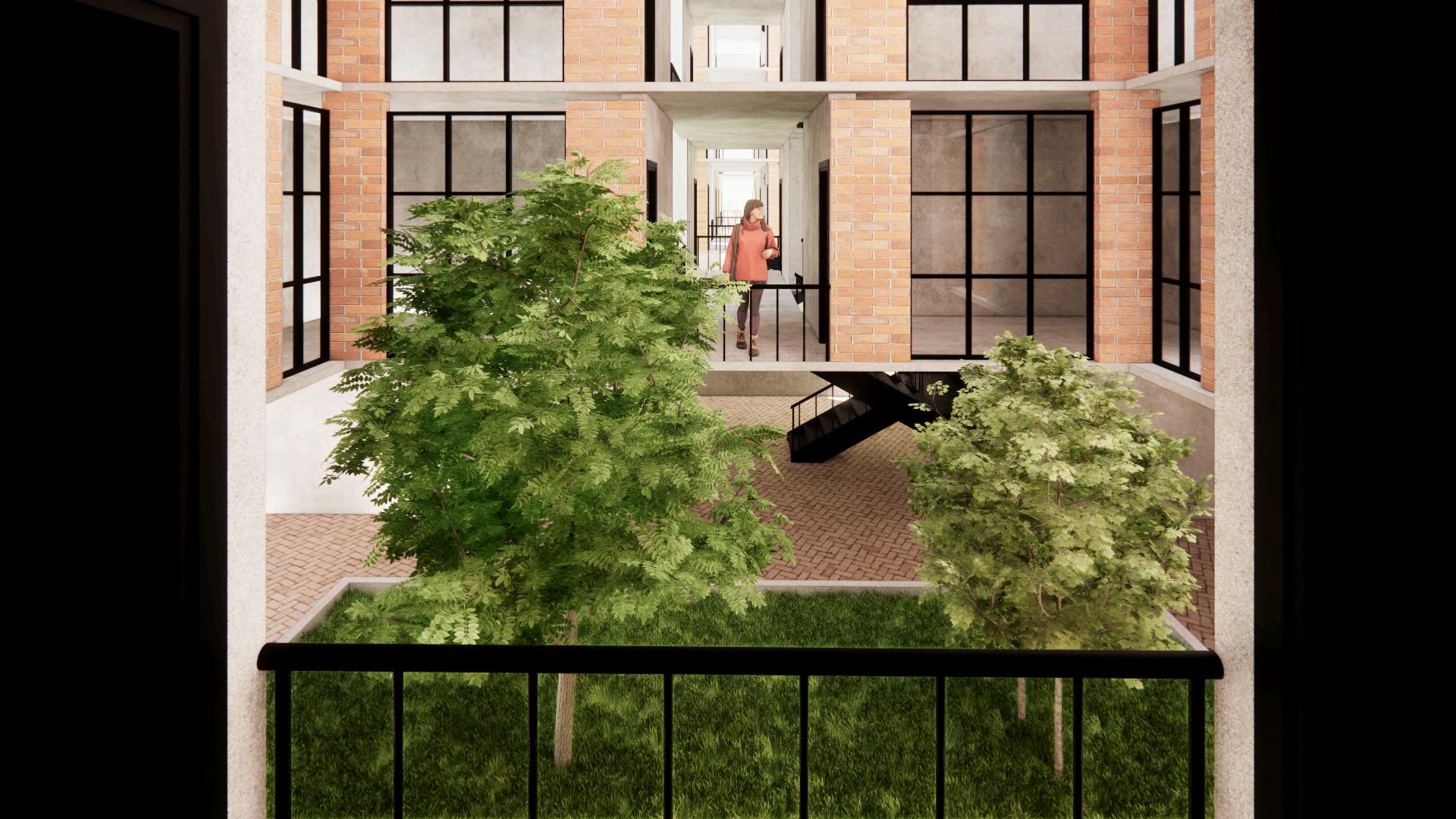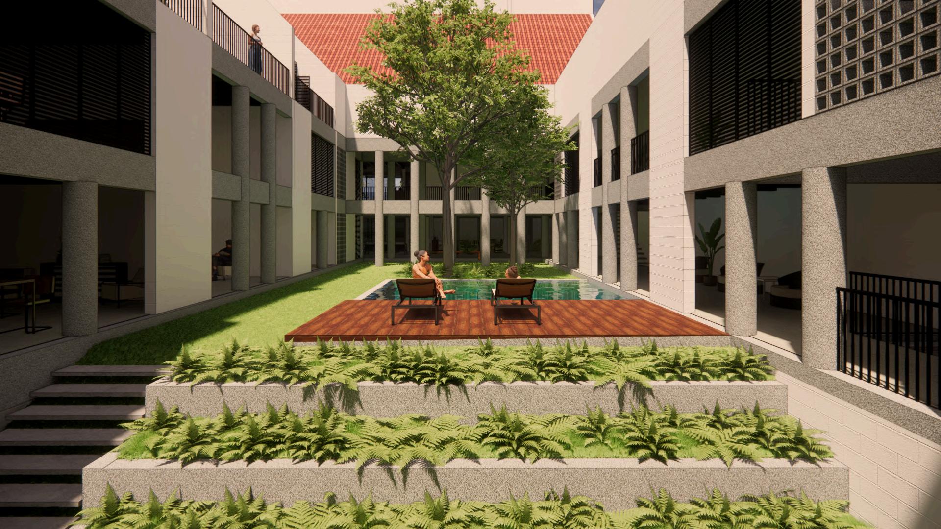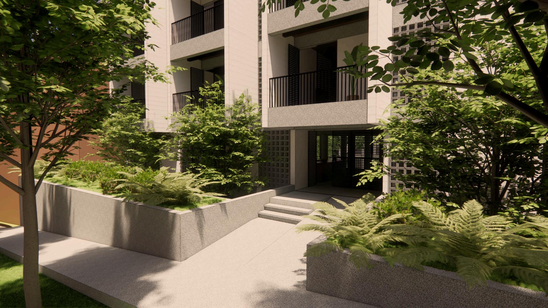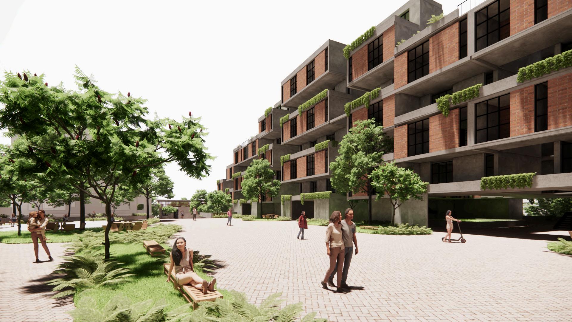 El proyecto se integra completamente con la vegetación, promoviendounaexperienciadearmoníaycolectividad,reforzada porlosespacioscomunesconfiguradosentrelosedificios.