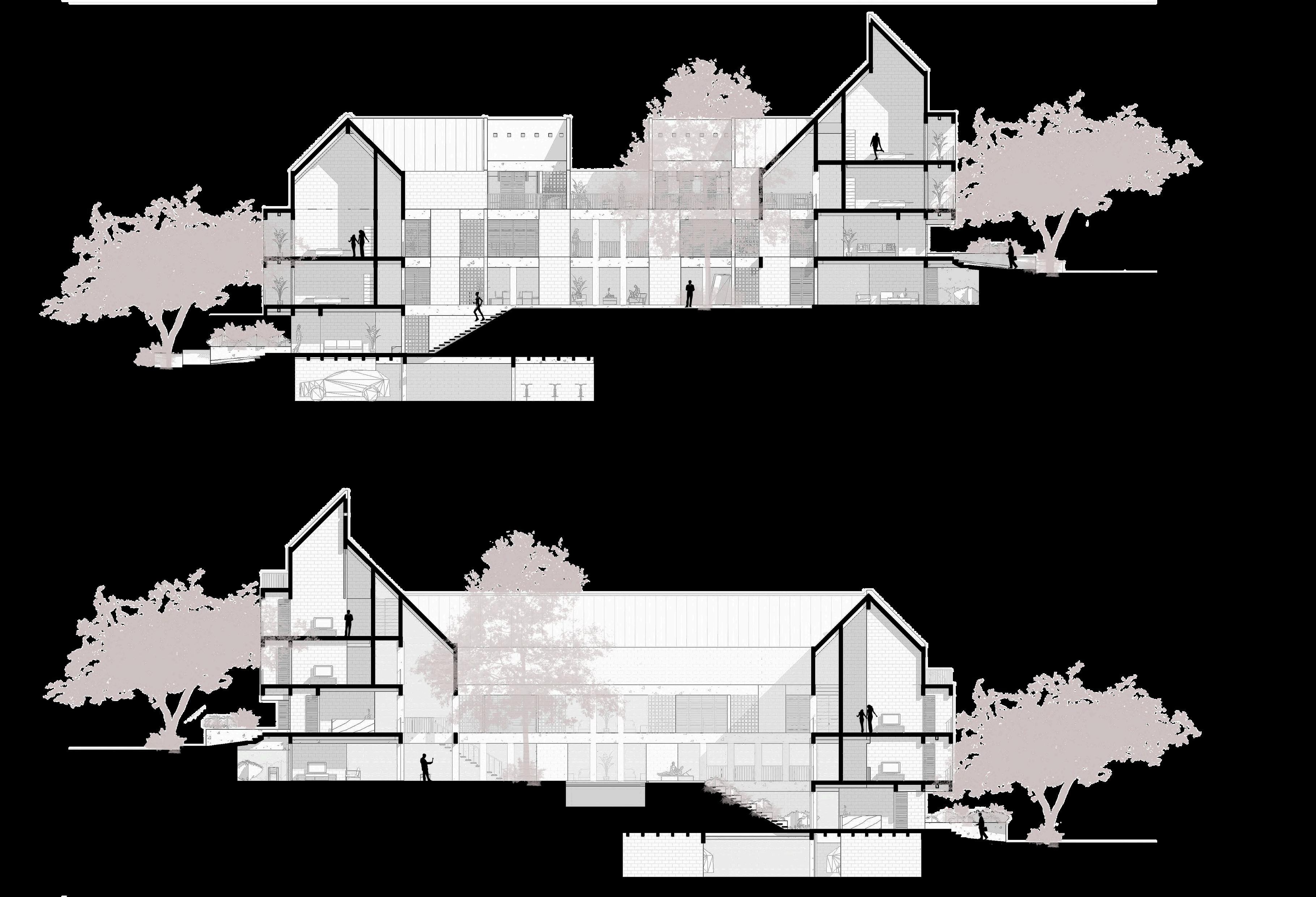 El programa incluye talleres, auditorio, biblioteca, galería, cafetería y espacios flexibles. La luz natural, captada a través de lucernarios, no soloilumina,sinoquedefinelaidentidaddelproyecto,convirtiéndose enunapresenciaconstantequeacompañaytransformalosespacios.