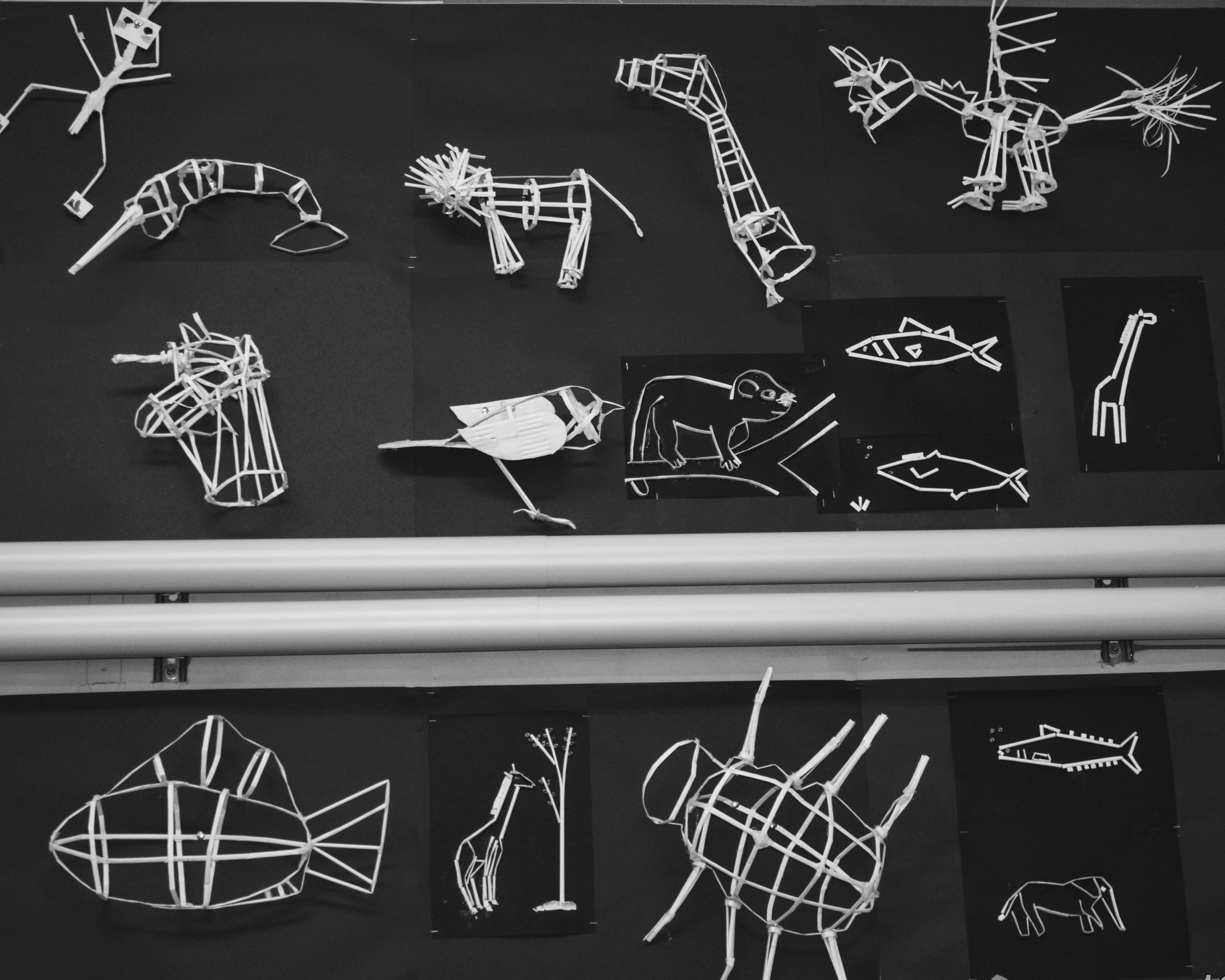 Above L to R : maquettes of clay and straw for design development free standing sculpture proposals created by pupils
