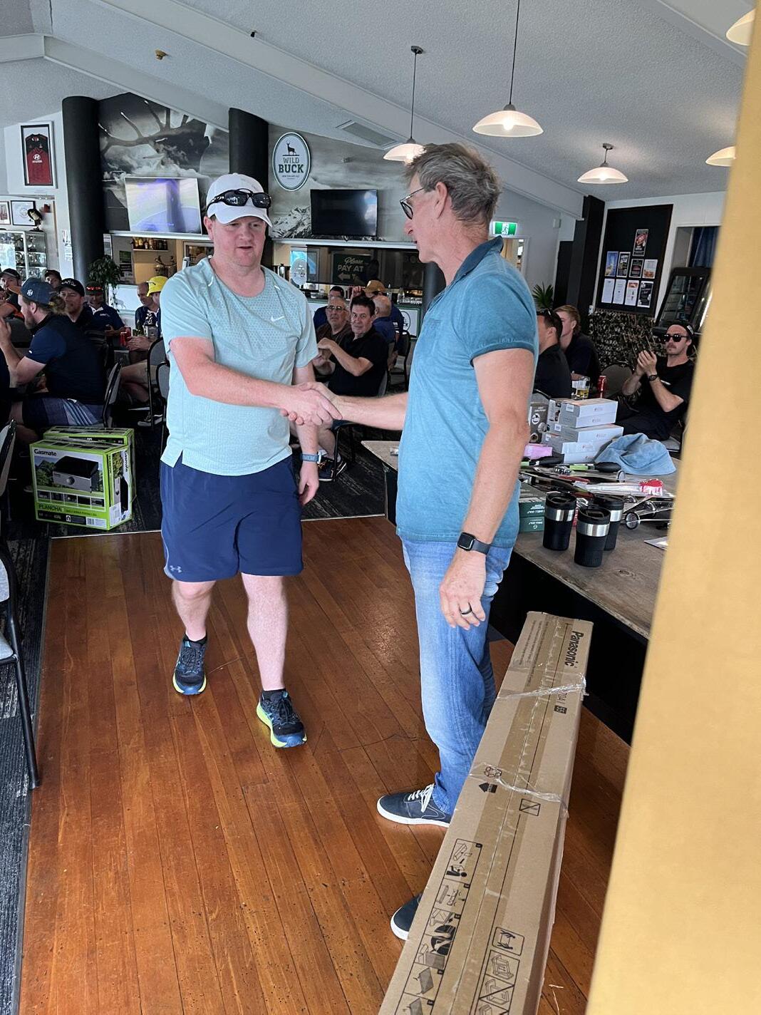We switched things up this year with the awards and opted to provide a First Net Placing for teams containing IRHACE Members, and a First Net Placing for teams without IRHACE Members. On reading out the firstplace winners, we had a tie between Carlett Electrical and Gavin Lowe Airconditioning! So, a putt-out was conducted, Cartlett Electrical getting one over on the GL Air team by about 4 inches and winning the barbecues kindly sponsored by Central Heating NZ. Second place went to GL Air, and third to McAlpine Hussmann.