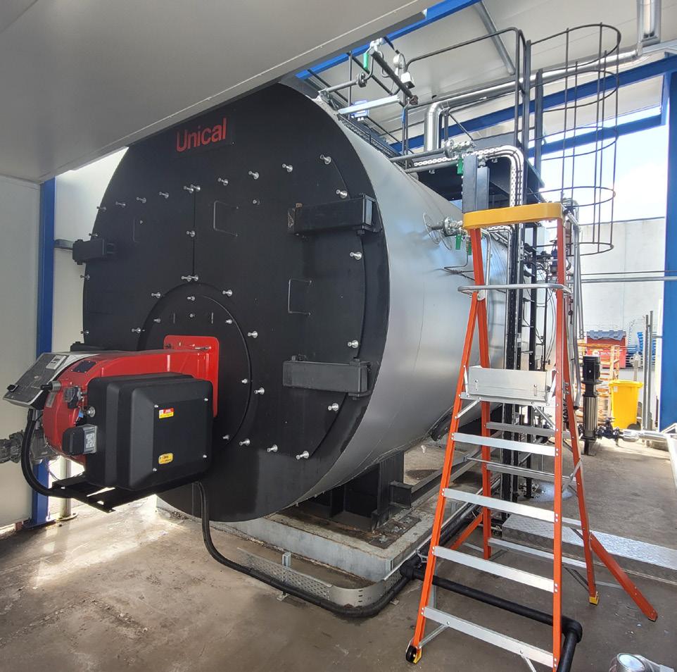 Engaging the expertise of Tubman Heating, the 5MW 90% efficient Unical Trypass 12 Steam Boiler, equipped with a gas-fired CIB modulating burner, was installed. It was suggested by the Tubman team that an economiser also be specified to recover the flue gas’ heat and use it to pre-heat the feedwater – further increasing the efficiency to 95%. The plant can also increase its demand in the future as the new boiler can provide up to 1,600kg/hr more than the current steam usage.