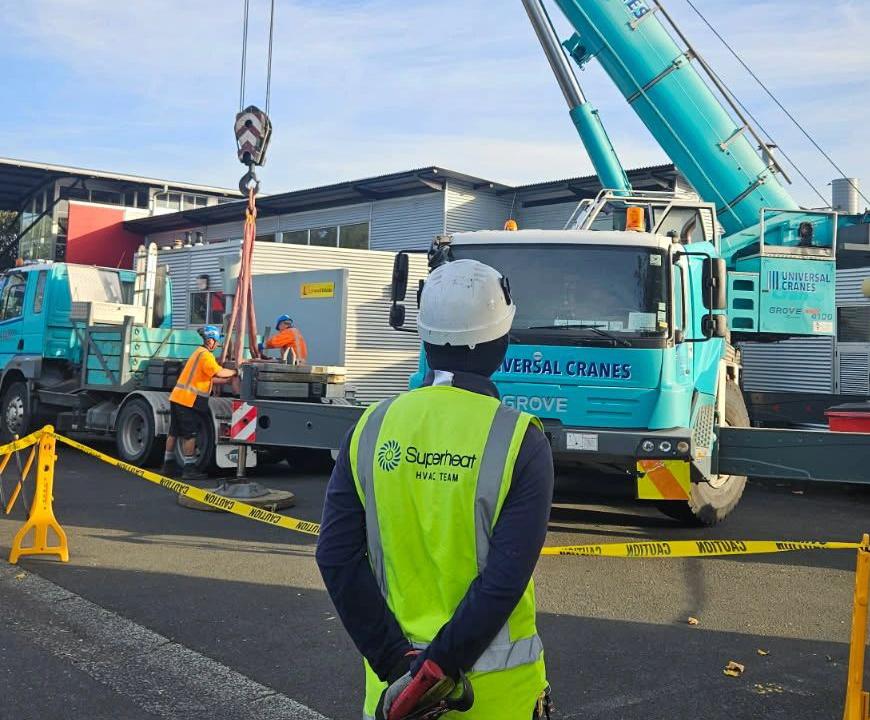 Craneliftsoncommercialprojectsarejustpart oftheevery-dayforSuperheatElectricaland Air-Conditioning.Keepupthegreatwork,team.