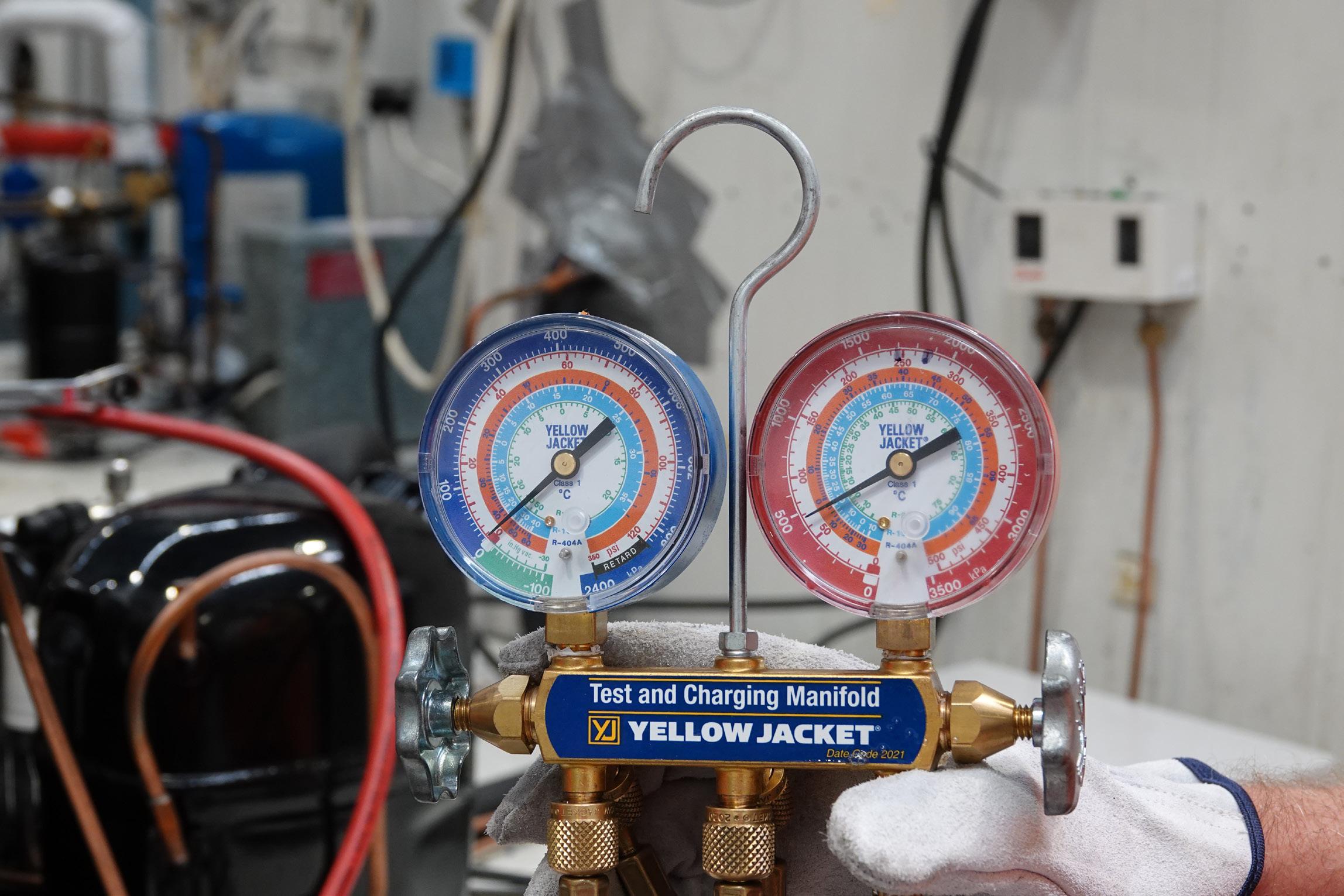 Units that decant refrigerant gas into a recovery cylinder that is located inside the unit. The cylinder sits on a load cell, and there are safety mechanisms to prevent an overfill.