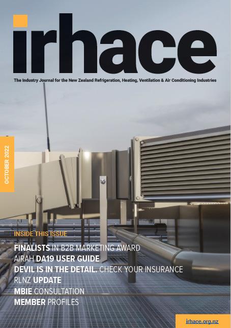 Disclaimer: Statements expressed in this publication do not necessarily reflect the policies or views of the associations, and members of IRHACE or CCCANZ. The IRHACE Journal publishes both local and international articles. Standards and or practices may differ from current New Zealand standards and or practices used. No responsibility is accepted by the associations and editor for the accuracy of information or for errors or omissions. The IRHACE Journal is distributed to all the IRHACE and CCCANZ financial members.