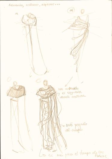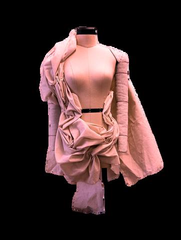 LUEGO SE EMPEZÓ A JUGAR CON EL TEXTIL DE FORMA QUE IMITASE ESTAS CUALIDADES A PARTIR DE LA MANIPULACIÓN TEXTIL. TÉCNICAS COMO EL MOULAGE, LAS JARETAS, EL FRUNCIDO ALEATORIO, ACORDONADO, ETC.