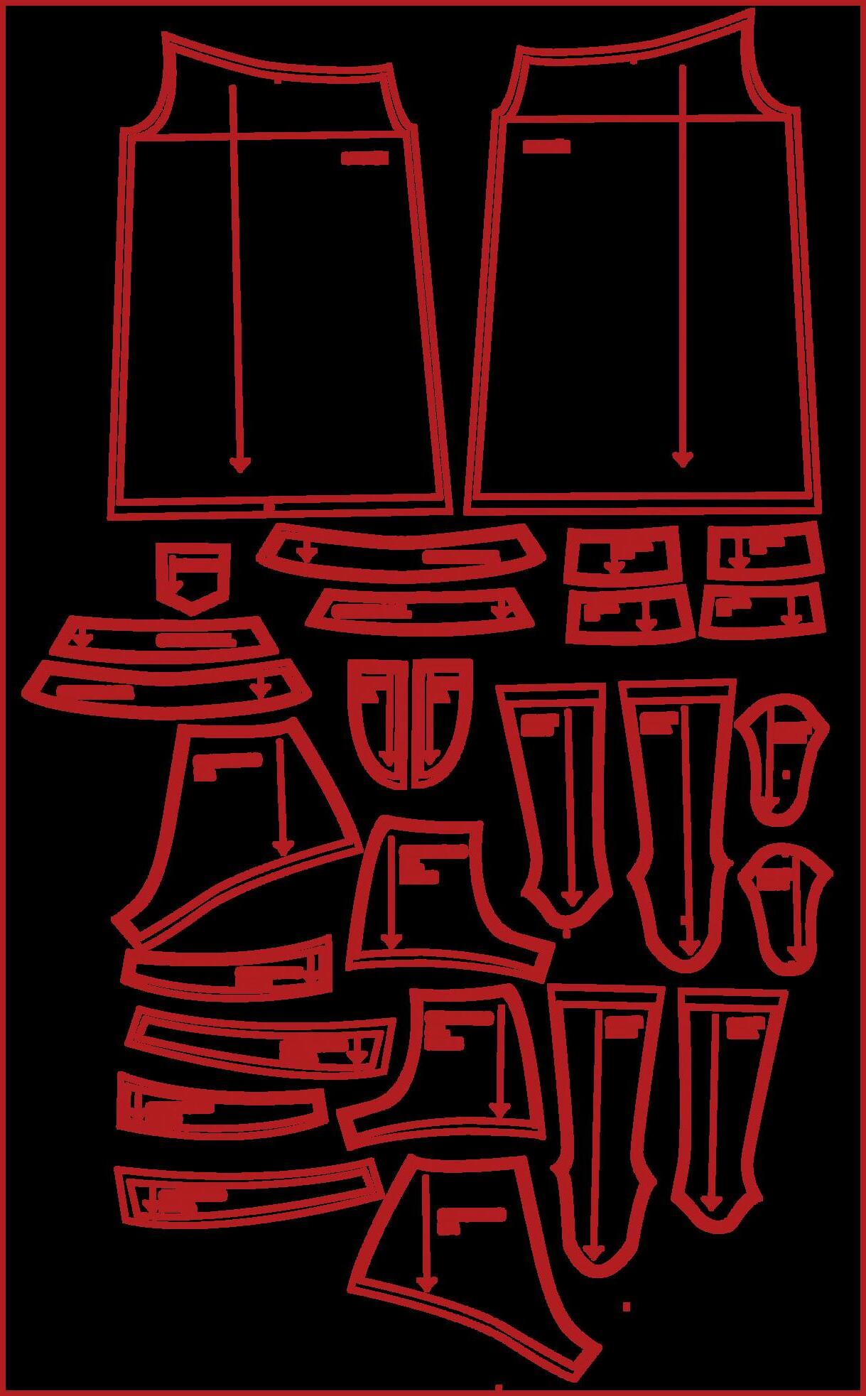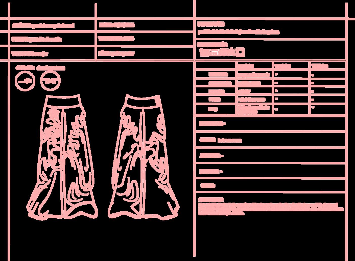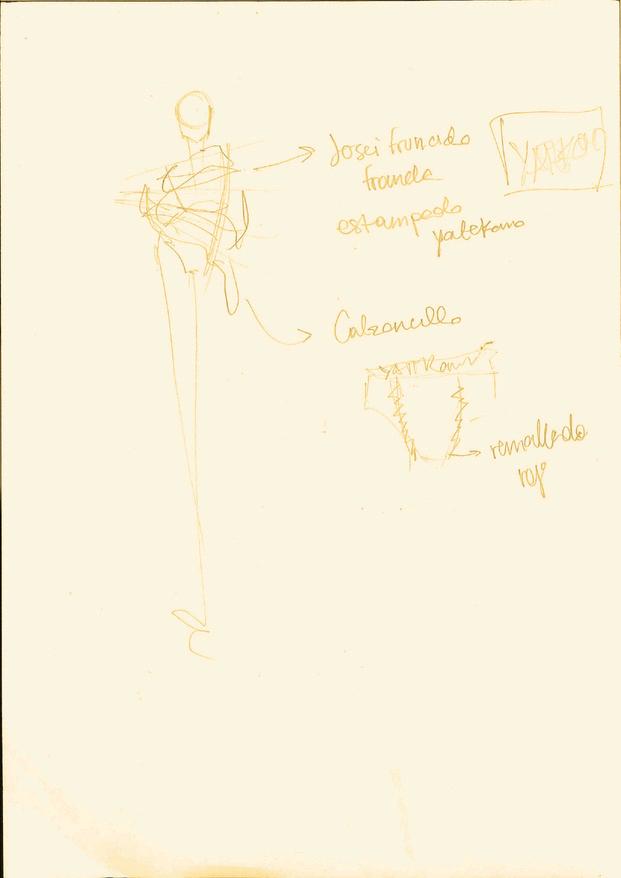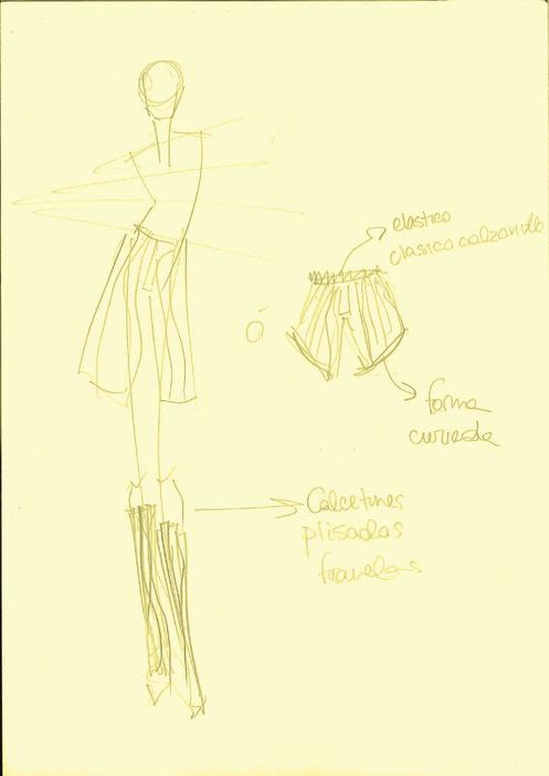 PARA LA PRENDA INFERIOR, EL PANTALÓN SE PATRONÓ Y SE CORTÓ SOBRE UN TEJIDO PREVIAMENTE FRUNCIDO SE COSIERON LAS PARTES Y SE REMATARÓN LOS FRUNCES