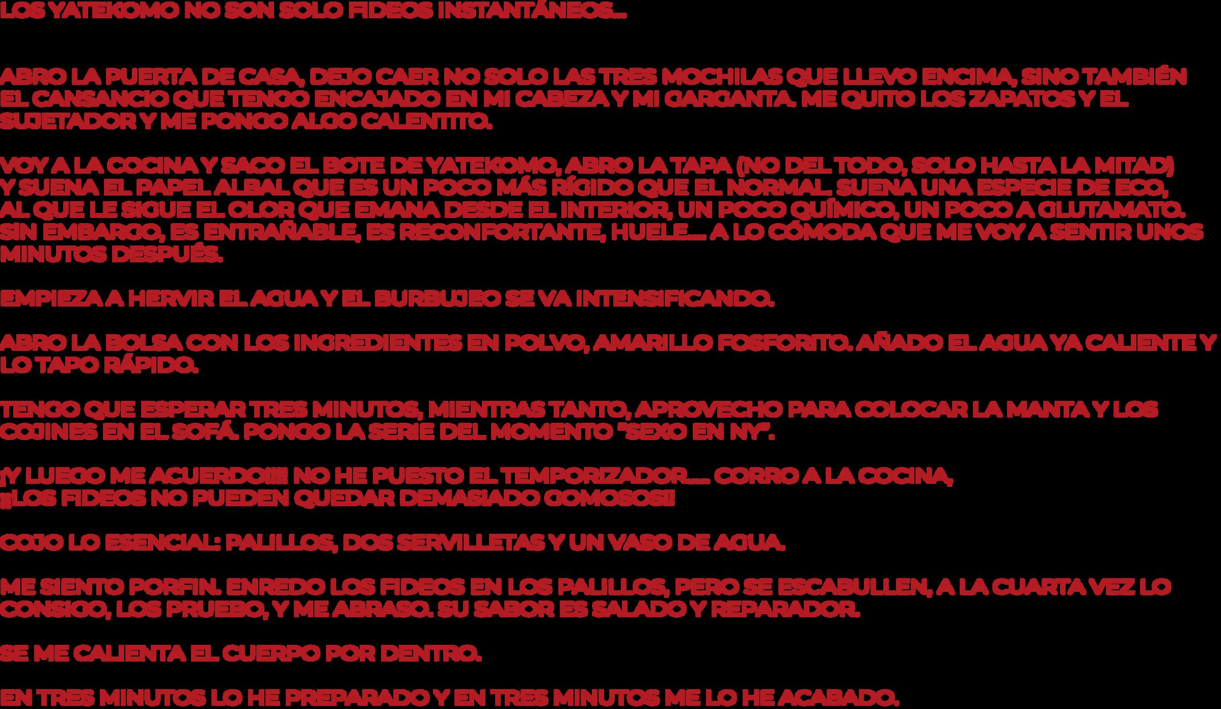 YATEKOMO ES UNA MARCA DE COMIDA RÁPIDA PROPIEDAD DE LA EMPRESA ESPAÑOLA GALLINA BLANCA, QUE A SU VEZ FORMA PARTE DEL GRUPO AGROLIMEN. LANZADA AL MERCADO EN 2013, YATEKOMO SE ESPECIALIZA EN LA PRODUCCIÓN DE FIDEOS INSTANTÁNEOS Y SOPAS, OFRECIENDO UNA SOLUCIÓN RÁPIDA Y CONVENIENTE PARA AQUELLOS QUE BUSCAN UNA COMIDA RÁPIDA Y FÁCIL DE PREPARAR