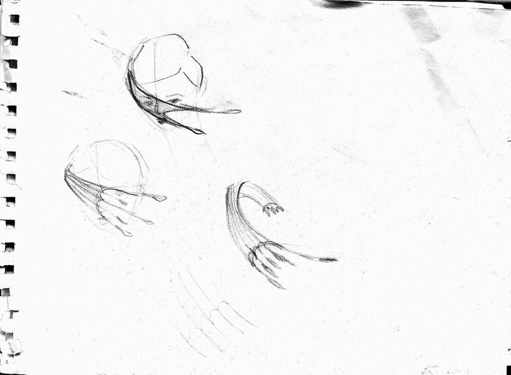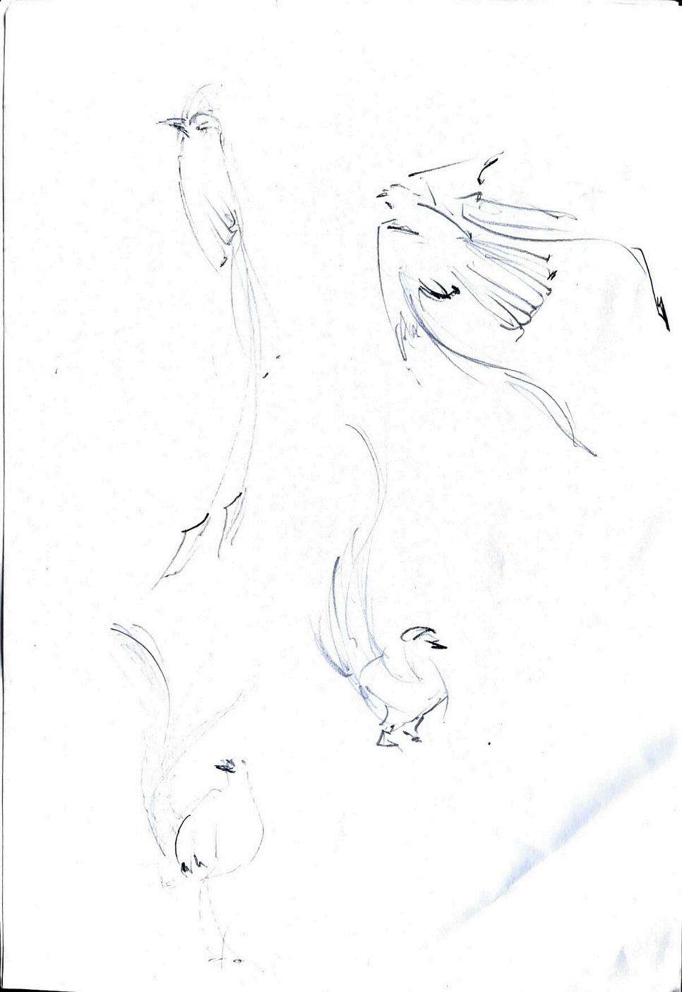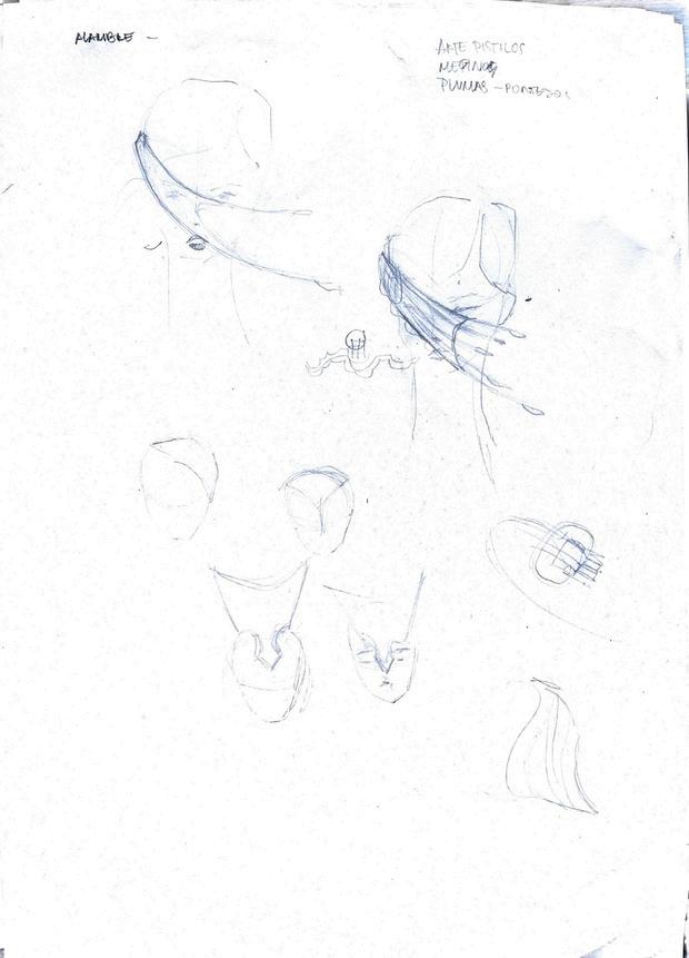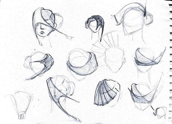 El proceso de bocetaje comenzó con la observación y el dibujo de pájaros, analizando sus formas, el dinamismo de sus alas y la fluidez de sus movimientos Estos estudios sirvieron como base para identificar líneas y siluetas que pudieran integrarse en el diseño del tocado A partir de estas exploraciones, se reinterpretaron elementos tanto de los accesorios tradicionales españoles como de las aves hasta llegar a un resultado deseable