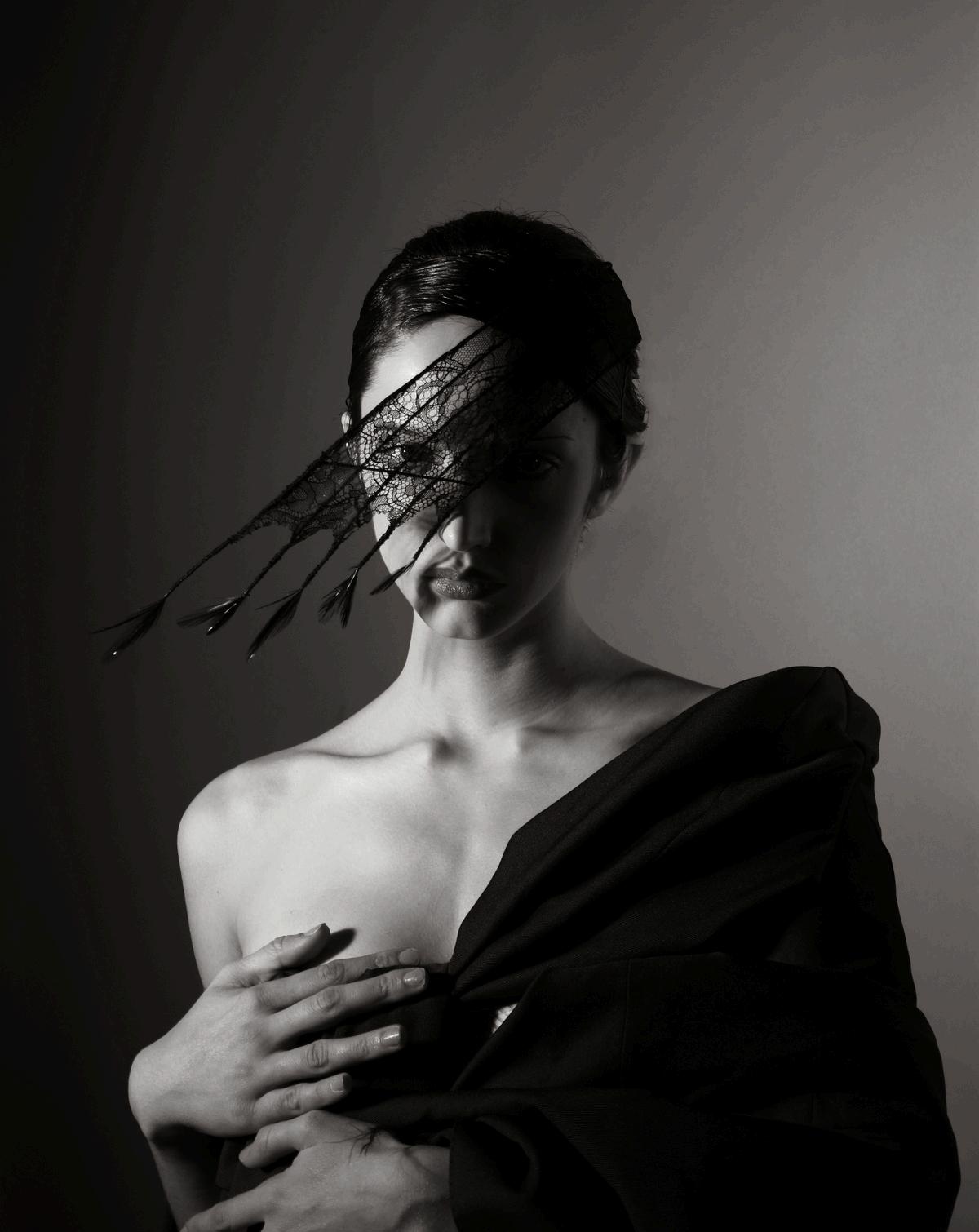 Inspirándose en los retratos femeninos de los años 20, se ha buscado crear una atmósfera en la que el sujeto y el tocado se convierten en los puntos focales absolutos La utilización de un claroscuro intenso y una iluminación lateral aporta un dramatismo que resalta las facciones de la protagonista, acentuando su presencia y carácter La baja saturación en algunas imágenes, junto con el blanco y negro en otras, evoca la estética de la época, un homenaje al estilo visual de aquel tiempo. Estos elementos se integran para dar vida a composiciones sobrias y atemporales, donde priman la elegancia y la feminidad.