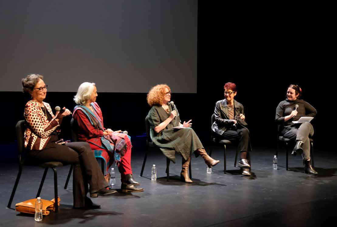 ARTISTS EDY FUNG, LEANNE MCDONAGH, AND ELLIE BERRY (center L-R) discuss If You Only Walk Long Enough, the second visual arts group show of the new IAC, curated by Moran Been-noon (far left).