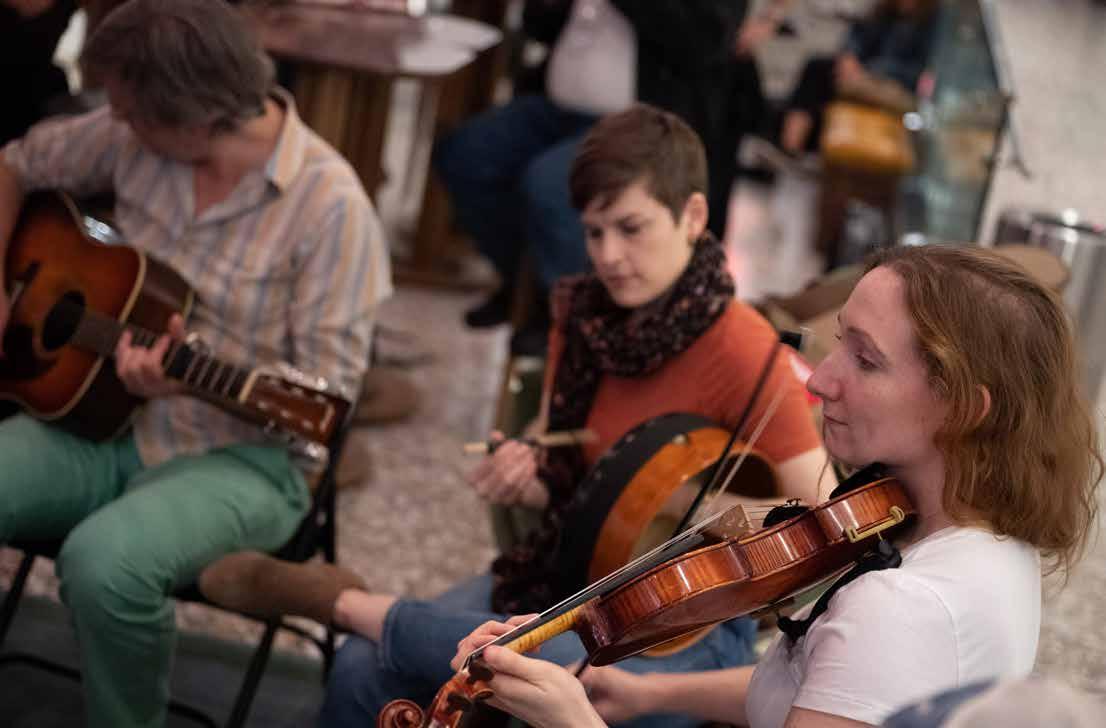 Renowned bodhrán player Anna Colliton curates this season’s series, inviting local trad luminaries into rousing sessions in the Devlin Café at Irish Arts Center. On select dates, veteran IAC fiddle teacher James Cleveland leads beginners in a slow session to kick off the evening.