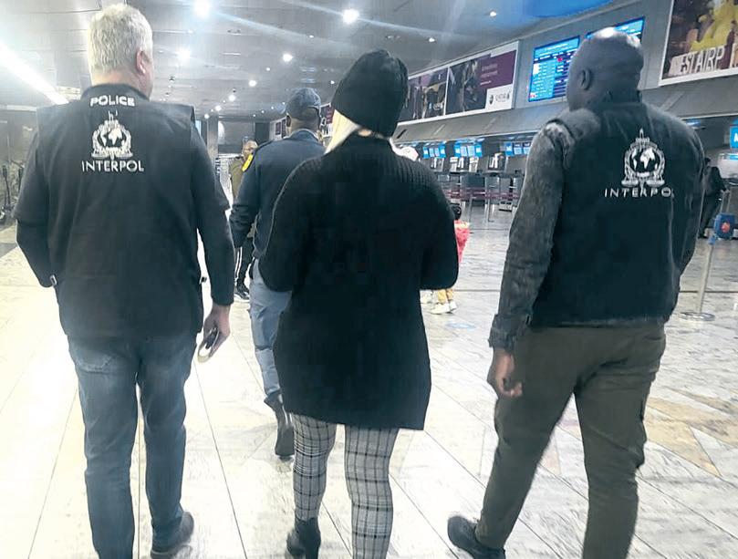 by Interpol officers to the OR Tambo International Airport in Johannesburg where she was led onto a British Airways Airbus A380-800 for the flight to London Heathrow.